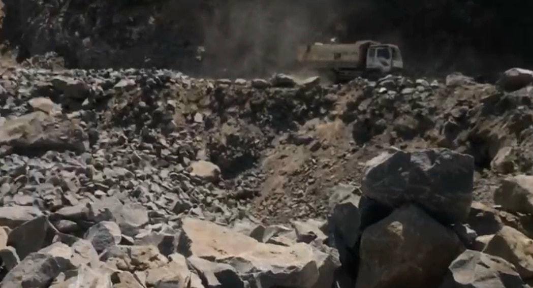 Không những làm nhiệm vụ bơm hàng ở phía trên, phía dưới các hố khai thác đá những xe múc cũng hoạt động hết công suất để múc những gàu đá chất đầy. Hoạt động khai thác rầm rộ, vô tội vạ khiến mỏ đá dần hình thành nên những hố sâu hun hút, địa chất khu vực trên gần như biến dạng hoàn toàn. Đứng trên mỏm đá nhìn xuống hố sâu có thể cảm nhận được cảm giác chênh vênh, nguy hiểm như đang đứng bên bờ vực thẳm. Hiện trường nơi mỏ đá như một cánh rừng vừa hứng trọn những trận bom.