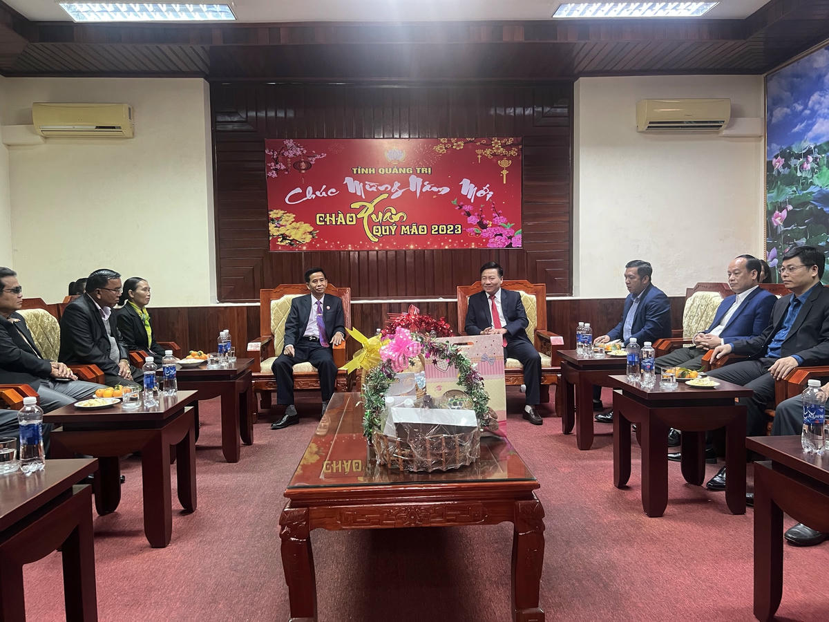 Đoàn đại biểu Ủy ban Mặt trận Lào xây dựng đất nước (XDĐN) tỉnh Salavan (Lào) sang thăm, chúc mừng Ủy ban MTTQ Việt Nam tỉnh Quảng Trị nhân dịp Tết Nguyên đán Quý Mão 2023.