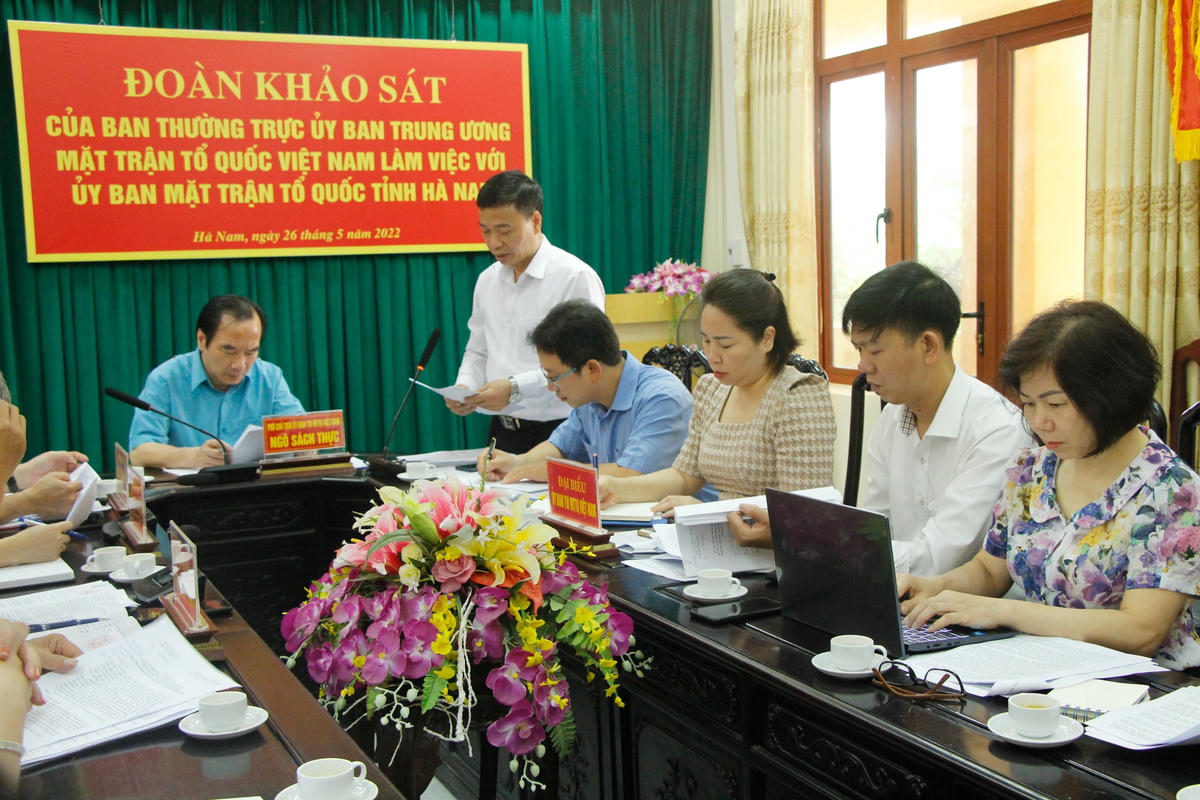 Đoàn khảo sát của Ban Thường trực UBTƯ MTTQ Việt Nam làm việc tại tỉnh Hà Nam