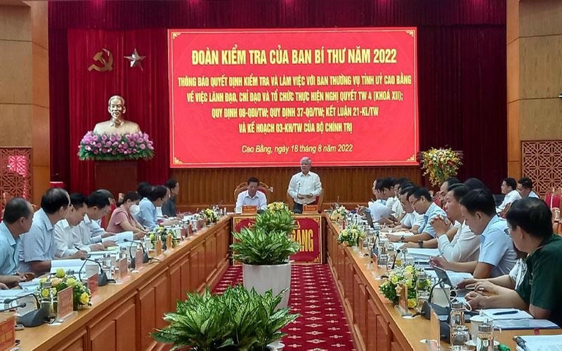 Đoàn kiểm tra của Ban Bí thư làm việc với Ban Thường vụ Tỉnh ủy Cao Bằng