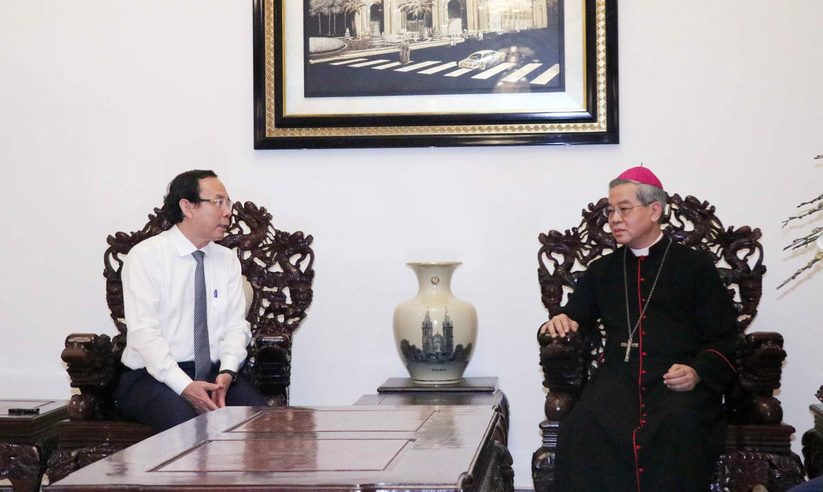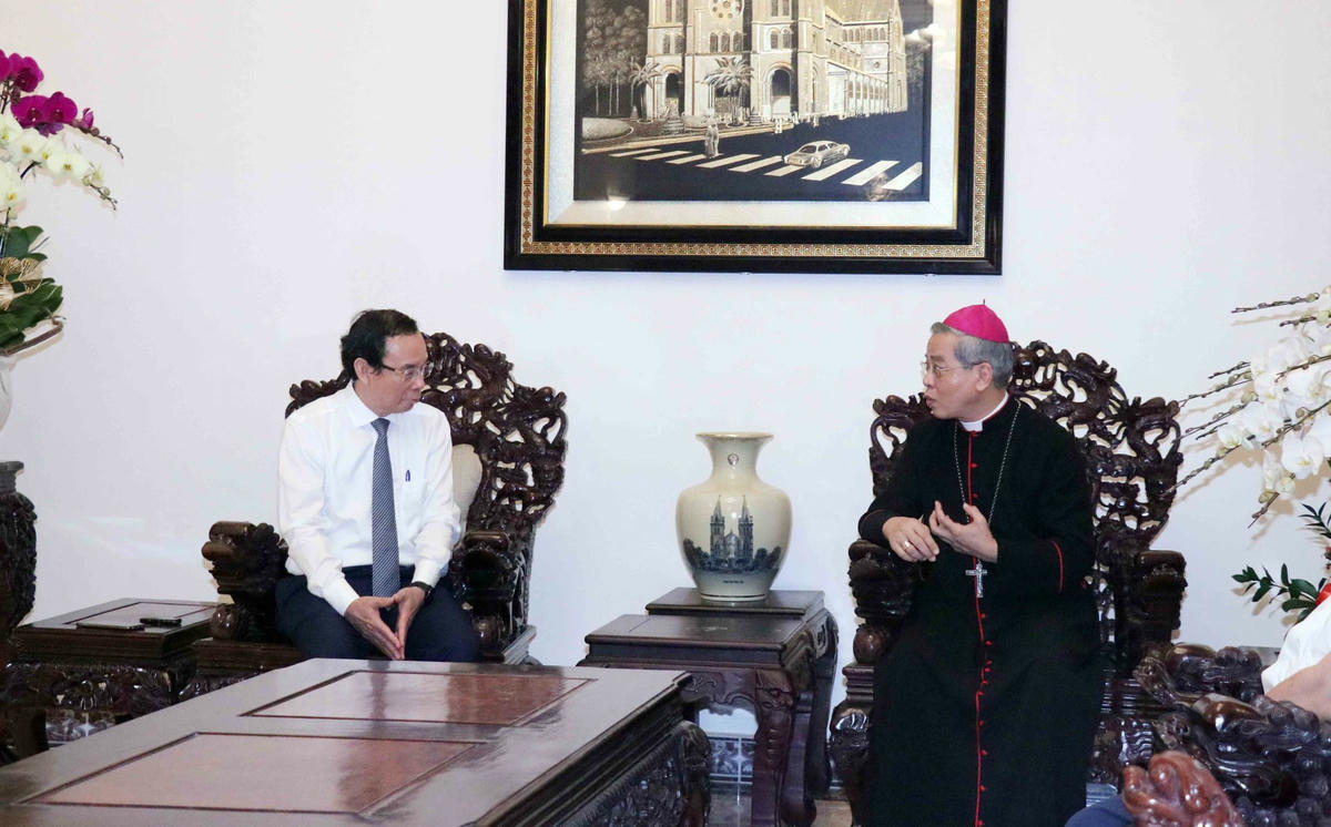 Tại buổi đến thăm, Bí thư Thành ủy TP HCM Nguyễn Văn Nên thay mặt đoàn gửi lời chúc mừng đến Tổng Giám mục Tổng Giáo phận TP HCM Giuse Nguyễn Năng vừa được bầu làm Chủ tịch Hội đồng Giám mục Việt Nam. Đây là niềm hân hoan của không chỉ Giáo phận TP HCM, đồng bào công giáo cả nước mà còn là niềm vui chung của chính quyền và nhân dân thành phố.