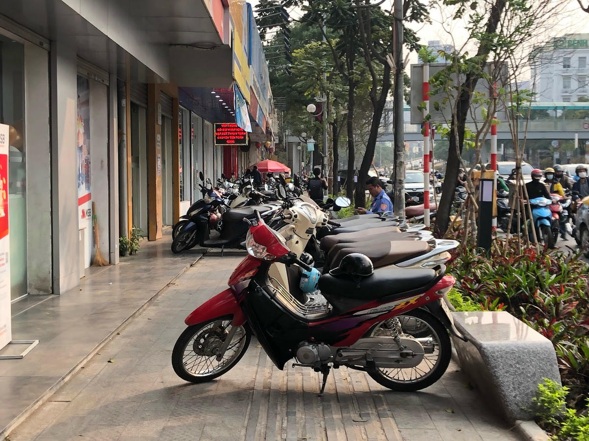 Đoạn vỉa hè Nguyễn Chí Thanh bị chiếm dụng sau 2 tháng chỉnh trang