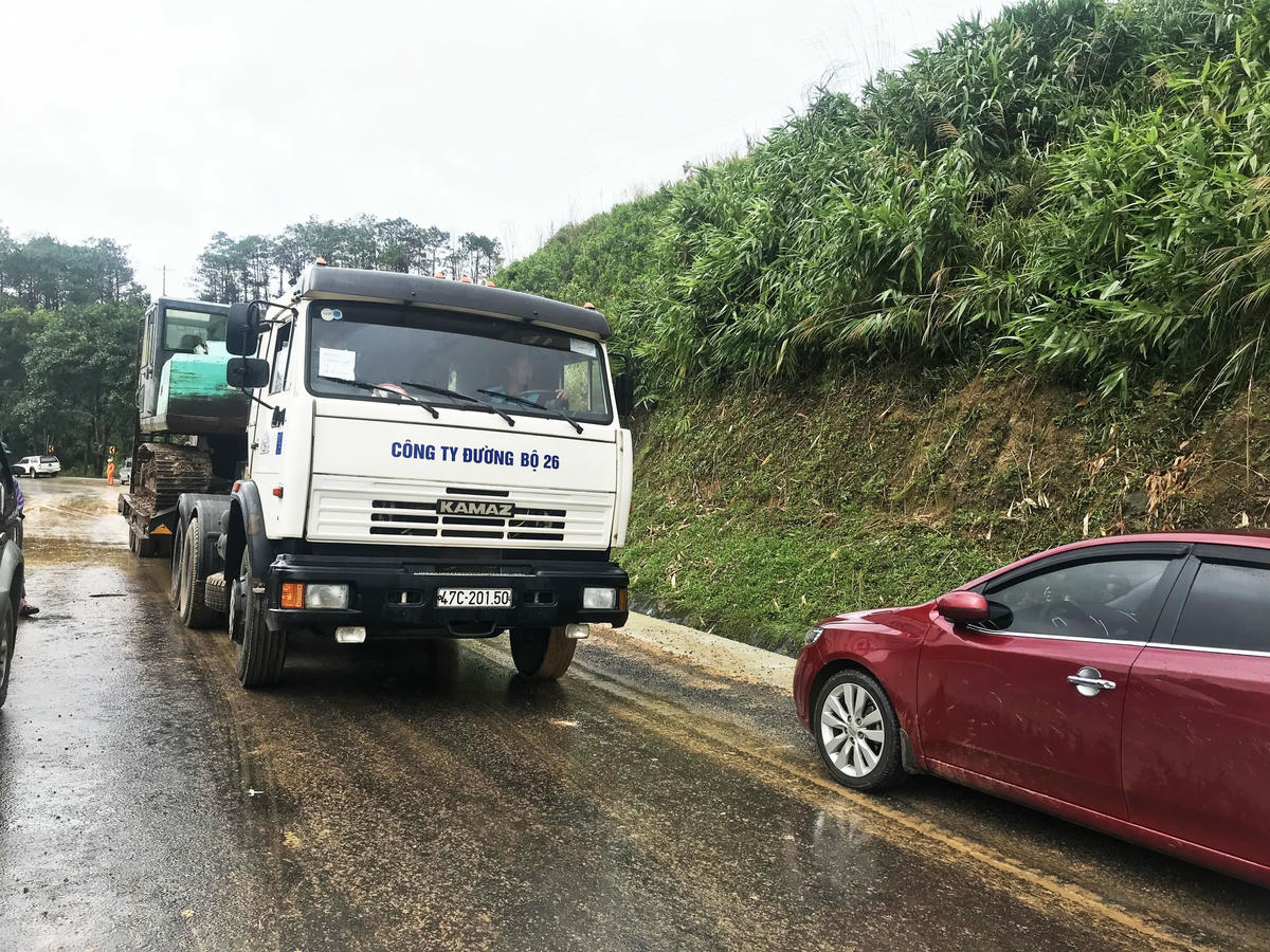 Phía Công ty Cổ phần QL&XD đường bộ 26 đang tích cực khắc phục, nhiều phương tiện máy móc được đơn vị điều đến để hỗ trợ sửa chữa, khai thông tuyến đường này.