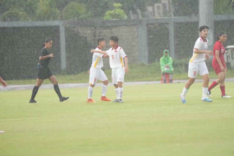 Trời tạnh mưa trong 45 phút còn lại giúp cầu thủ hai đội triển khai ý đồ chiến thuật có sự rõ nét hơn. Với ưu thế vượt trội, thế trận tiếp tuc thuộc về thầy trò HLV Akira. Phút 66, các cầu thủ U19 nữ Việt Nam được hưởng sút phạt penalty. Không bỏ lỡ cơ hội, đội trưởng Lê Thị Bảo Trâm (2) đã dứt điểm chính xác, nâng tỉ số lên 5-0. Tỉ số trận đấu có thể đã thay đổi nếu hậu vệ Nguyễn Thị Thùy Nhi (8) không sút hỏng tình huống U19 nữ Việt Nam được hưởng penalty ở phút 90. Kết quả chung cuộc, với việc giành chiến thắng đậm 5-0, U19 nữ Việt Nam đã có 3 điểm đầu tiên đầy thuận lợi tại giải U19 nữ Đông Nam Á 2023.