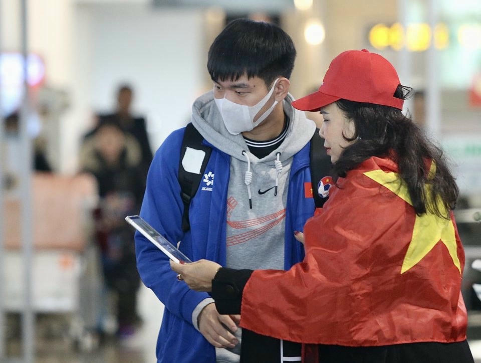 Theo cập nhật từ Liên đoàn bóng đá Việt Nam, 17 thành viên có mặt ở sân bay Nội Bài gồm có Tổng thư ký Liên đoàn bóng đá Việt Nam, Trưởng đoàn đội tuyển Việt Nam Dương Nghiệp Khôi; HLV trưởng Philippe Troussier; trợ lý Moulay; HLV thể lực Cedric Rogers cùng 13 cầu thủ là: Khuất Văn Khang, Nguyễn Filip, Nguyễn Thái Sơn, Nguyễn Thanh Bình, Nguyễn Văn Tùng, Phan Tuấn Tài, Phạm Xuân Mạnh, Phạm Tuấn Hải, Trương Tiến Anh, Lê Phạm Thành Long, Vũ Văn Thanh, Nguyễn Văn Việt và Nguyễn Đình Bắc.