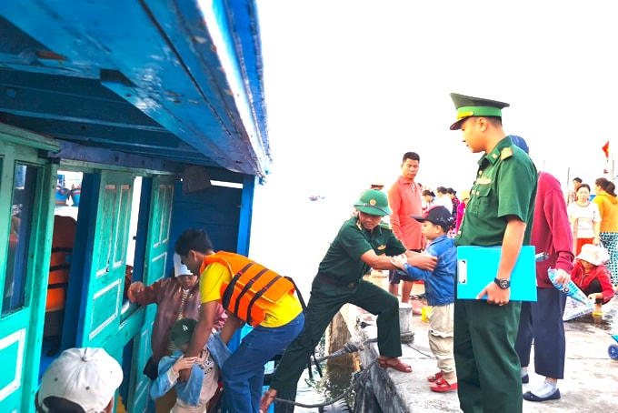 Những ngày giáp Tết, nhiều chuyến đò ngang từ thị trấn Vạn Giã (huyện Vạn Ninh) đến thôn Khải Lương, vận chuyển hành khách và chở theo nhiều hàng hóa. Trên bến đò, những người lính biên phòng làm nhiệm vụ kiểm tra, kiểm soát người, phương tiện và hàng hóa. Cùng với đó, các anh cũng chung tay giúp đỡ người dân bốc dỡ hàng hóa, dìu đỡ trẻ em hay người lớn tuổi lên xuống đò. Ông Hùng - người dân thôn Khải Lương chia sẻ: “Chuẩn bị đón năm mới, tôi mua cái tủ từ đất liền đưa ra đảo. Do vận chuyển từ đò lên bờ rất khó khăn nên cán bộ, chiến sĩ biên phòng xắn tay giúp đỡ. Ở đây là vậy, lúc nào các anh cũng tận tình hỗ trợ khi người dân cần đến”.
