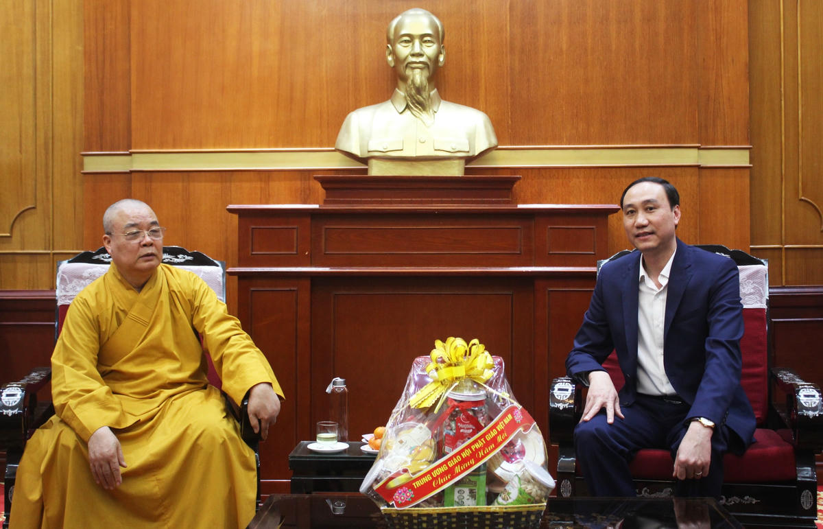 Đến thăm UBTƯ MTTQ Việt Nam, Hòa thượng Thích Thanh Nhiễu gửi lời chúc mừng năm mới tối đẹp nhất đến UBTƯ MTTQ Việt Nam nhân dịp Tết cổ truyền Quý Mão 2023; đồng thời khẳng định GHPG Việt Nam sẽ luôn đồng hành cùng MTTQ Việt Nam, sát cánh cùng đất nước, đem lại hạnh phúc, bình an cho nhân dân.