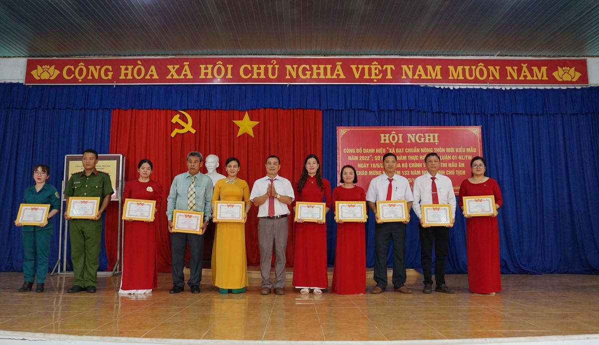 Dịp này, UBND xã Lang Minh cũng đã tổ chức sơ kết 2 năm thực hiện Kết luận 01-KL/TW ngày 18 tháng 5 năm 2021 của Bộ Chính trị; tặng thưởng cho các tập thể, cá nhân có thành tích xuất sắc trong xây dựng Nông thôn mới kiểu mẫu.