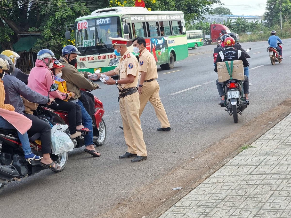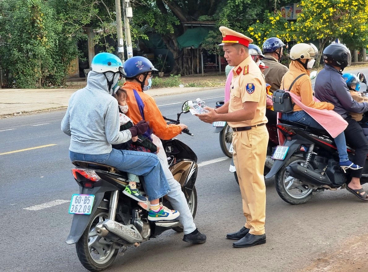 Đồng Nai: CSGT tặng khăn lạnh, nước suối cho người dân trên đường về quê đón Tết