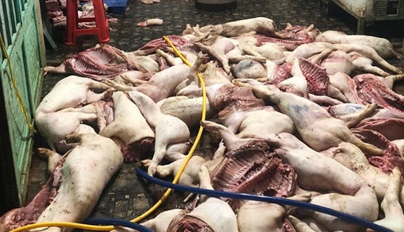Lực lượng chức năng bất ngờ kiểm tra một hộ dân phát hiện hơn 1 tấn thịt lợn (heo) bốc mùi hôi thối đã được lọc nằm lăn lóc trên nền xi măng bẩn thỉu.
