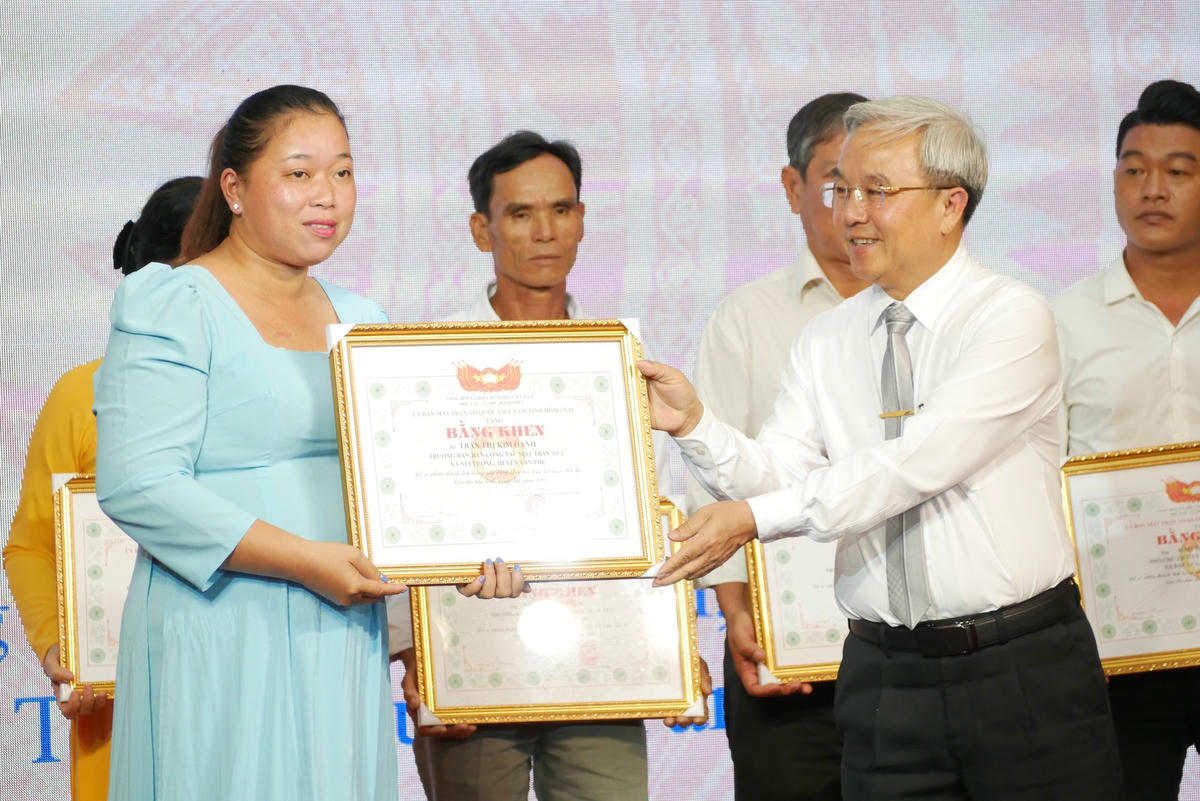 Chiều 18/11, Ủy ban MTTQ Việt Nam tỉnh Đồng Nai đã tuyên dương 92 gương cán bộ Mặt trận cơ sở tiêu biểu có nhiều thành tích trong xây dựng khối đại đoàn kết toàn dân tộc trên địa bàn năm 2022.