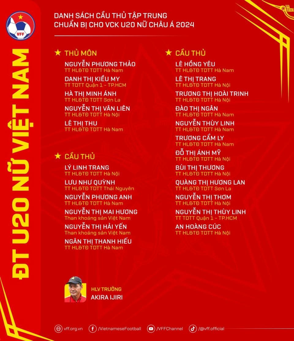 Bên cạnh đó, theo kế hoạch, HLV Akira Ijiri cùng các cộng sự cũng đang cân nhắc và sẽ tiếp tục triệu tập các cầu thủ có phong độ thi đấu tốt tại giải bóng đá nữ vô địch quốc gia vừa qua để tăng cường lực lượng cho U20 nữ Việt Nam.