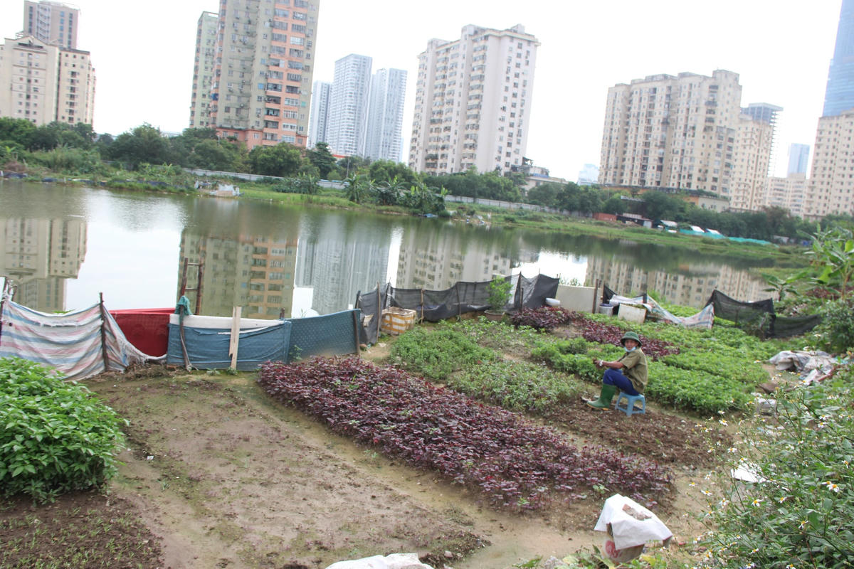 Cũng theo ông Hòa, một người dân sống tại phường Trung Hòa cho hay: “Từ khi thu hồi đất ruộng để xây dựng dự án công viên đến nay đã 10 năm rồi mà không triển khai xây dựng. Thi thoảng họ đưa máy móc đào được một đoạn lòng hồ xong rồi bỏ đấy cũng không kè bờ hồ, họ làm được tí rồi đóng cửa bỏ đấy không biết khi mới làm xong. Do dự án bỏ hoang cỏ mọc um tùm, lãng phí đất đai nên bà con chúng tôi ra đây tăng gia ít rau, ít mướp. Có mấy nhà họ còn thuê đất và mặt hồ để nuôi vịt và thả cá”.