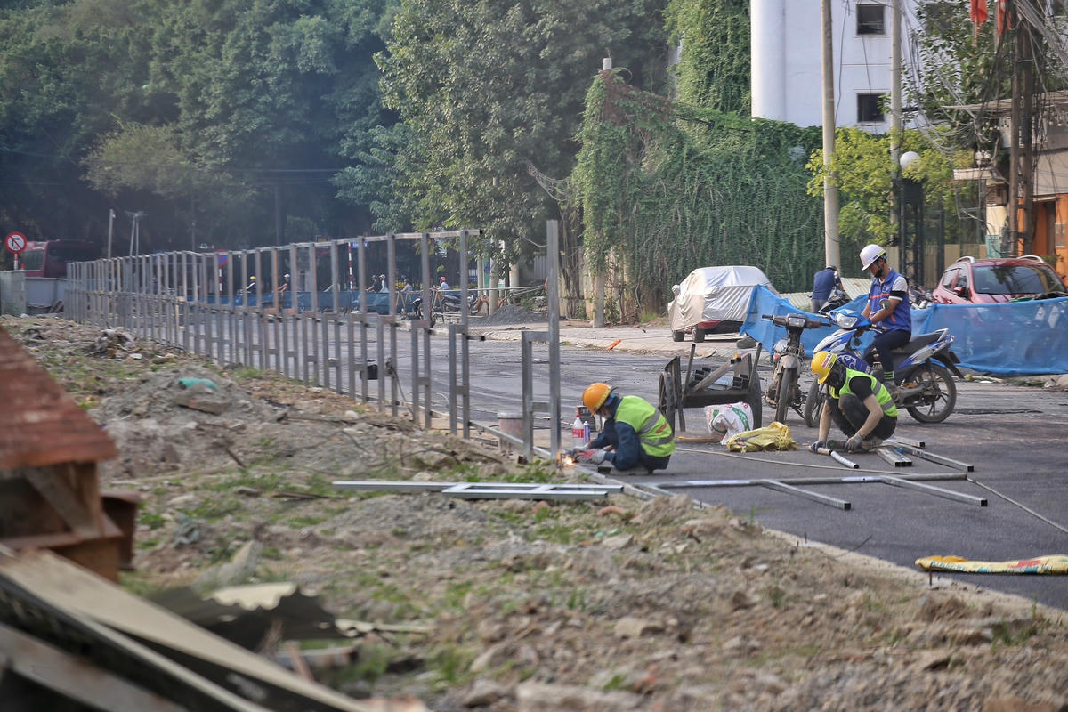 Tại ga ngầm S11 của dự án đường sắt Nhổn – Ga Hà Nội hiện đã thảm mặt đường hoàn trả mặt bằng nửa phía Bắc để rào chắn thi công nửa phía Nam đoạn từ ngã ba phố Quốc Tử Giám – Văn Miếu kéo dài về phía Ngô Sỹ Liên.