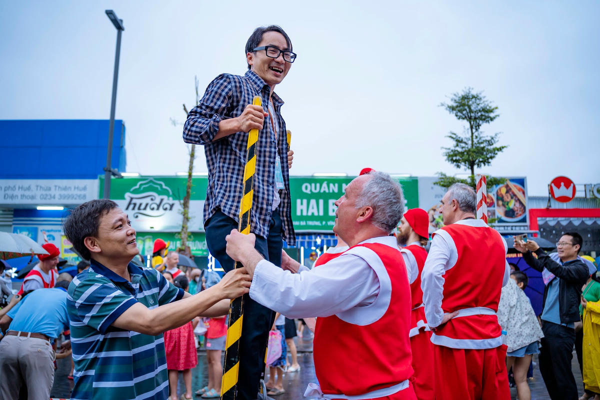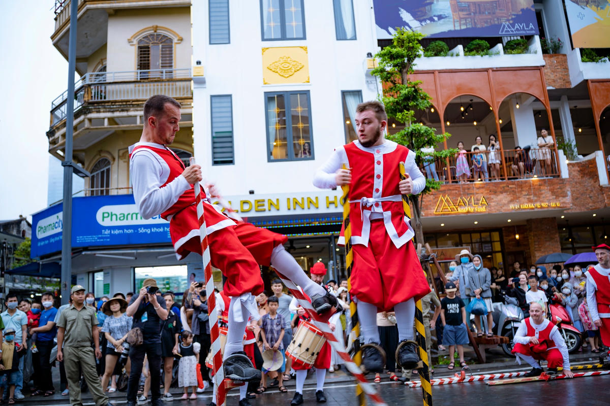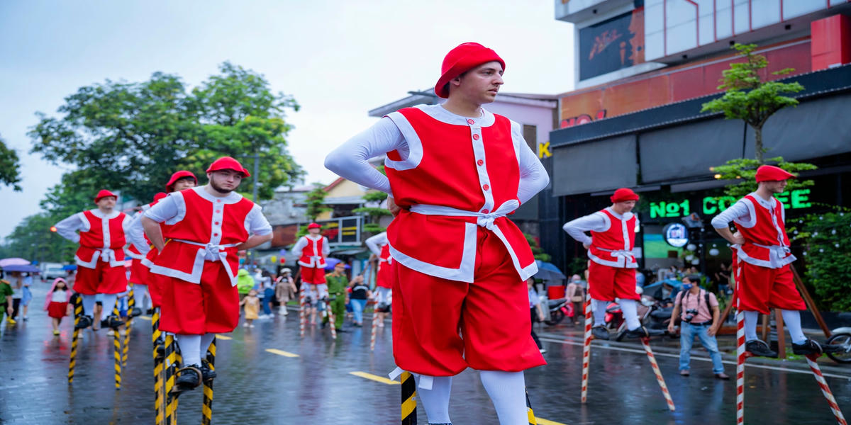 Nằm trong khuôn khổ Festival nghề truyền thống Huế 2023, đoàn nghệ sĩ đến từ thành phố Namur, Vương quốc Bỉ đã biểu diễn đi cà kheo khiến các tuyến đường tại thành phố Huế trở nên náo nhiệt.