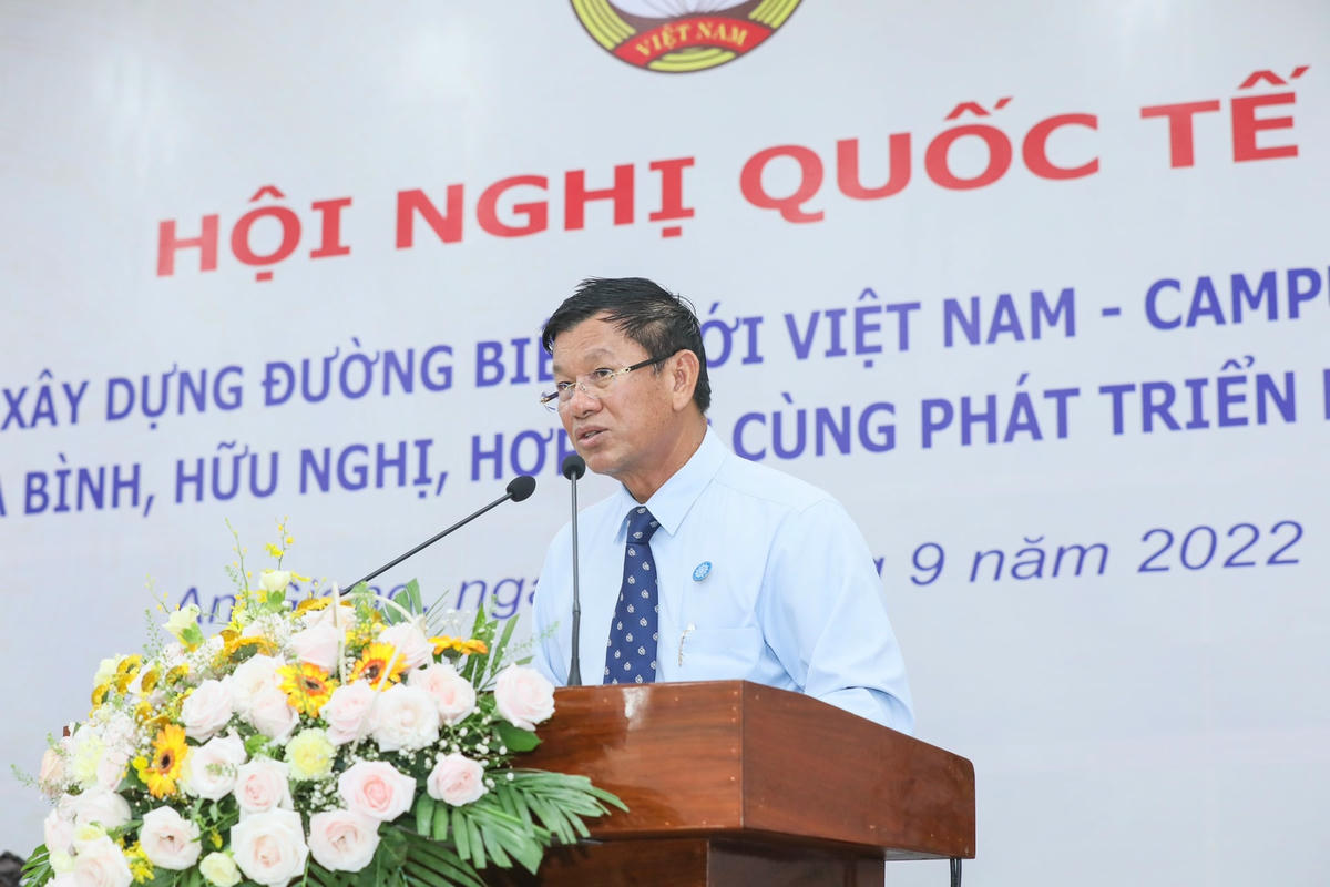 Tôi xin bày tỏ vui mừng khi chúng ta đã tổ chức sự kiện Hội nghị quốc tế “Xây dựng đường biên giới, hòa bình, hữu nghị, hợp tác cùng phát triển giữa Mặt trận hai nước Campuchia-Việt Nam”, đây là lần gặp gỡ thứ 6 của chúng ta, sau khi được tổ chức vào năm 2017, tại tỉnh Kampot, Vương quốc Campuchia. Hội nghị của chúng ta hôm nay sẽ tập trung vào công tác xây dựng đường biên giới hòa bình, hữu nghị và hợp tác tốt đẹp giữa hai nước Campuchia và Việt Nam, và góp phần làm cho mối quan hệ đoàn kết, hữu nghị và hợp tác truyền thống này ngày càng khăng khít và bền chặt hơn nữa, tiến tới củng cố nền hòa bình và sự phát triển của hai nước, phù hợp với phương châm quan hệ của hai nước chúng ta “láng giềng tốt đẹp, hữu nghị, truyền thống, hợp tác trên mọi lĩnh vực và bền vững lâu dài”.