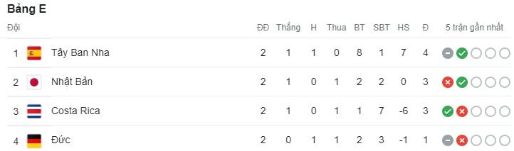 Muốn vượt qua vòng loại, ĐT Đức (1 điểm) buộc phải đánh bại Costa Rica (3 điểm) ở lượt cuối. Họ phải thắng và đáp ứng đồng thời một trong các điều kiện sau: (1) Nhật Bản thua Tây Ban Nha; (2) Nhật Bản hòa và Đức thắng cách biệt 2 bàn; ( 3) Nhật Bản hòa, Đức thắng cách biệt 1 bàn, ghi nhiều bàn thắng hơn Nhật Bản (ví dụ Đức 2-1, Nhật Bản 1-1); (4) Nhật Bản đánh bại Tây Ban Nha, Đức vượt qua Costa Rica 8 bàn cách biệt.