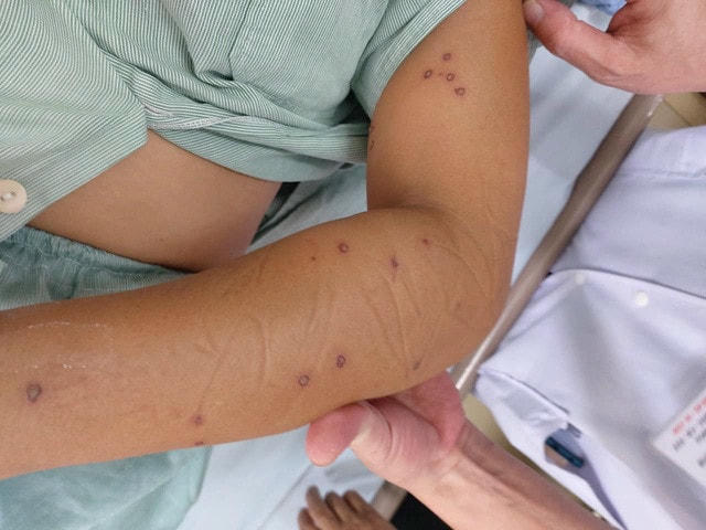 Một trường hợp khác, bệnh nhân P.X.M. (28 tuổi, Quảng Ninh) nhập Trung tâm Y tế Tiên Yên (Quảng Ninh) trong tình trạng khó thở, tức ngực, vã mồ hôi, môi chi tím tái, sốc phản vệ nặng do ong vò vẽ đốt. Người nhà kể lại, khi đi làm vườn, chị không may bị ong vò vẽ đốt khắp người.