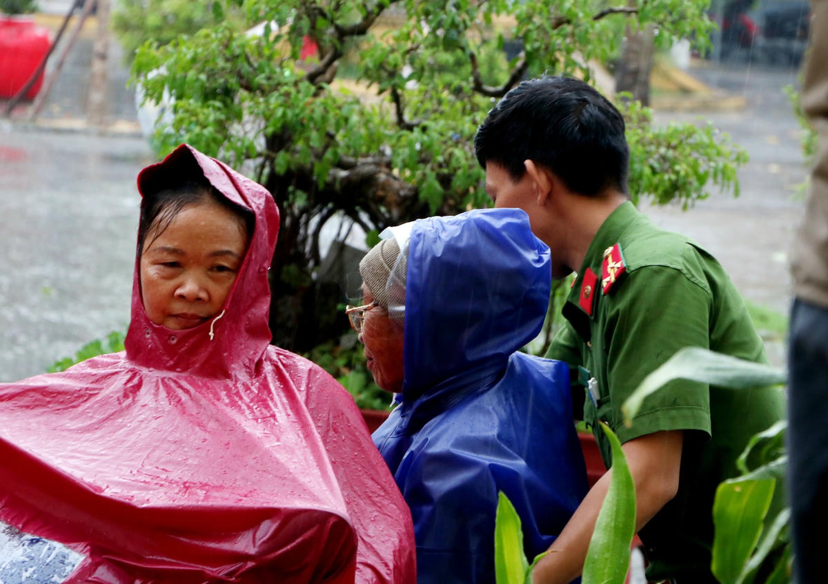 Bà Lê Thị G. (78 tuổi, trú phường Thuận An) đã òa khóc ngay khi được lực lượng phục vụ tại điểm tránh trú bão tại trường THCS Thuận An tiếp nhận. Bà Nguyễn Thị Liễu (58 tuổi, trú phường Thuận An), tham gia công tác hậu cần tại khu tránh trú đỡ bà G. ngồi xuống, an ủi: “Mệ đến đây là an tâm rồi! Mệ đừng lo, đừng khóc. Mệ ăn gì chưa? Có đói không? Con lấy cơm cho mệ ăn nhé”.
