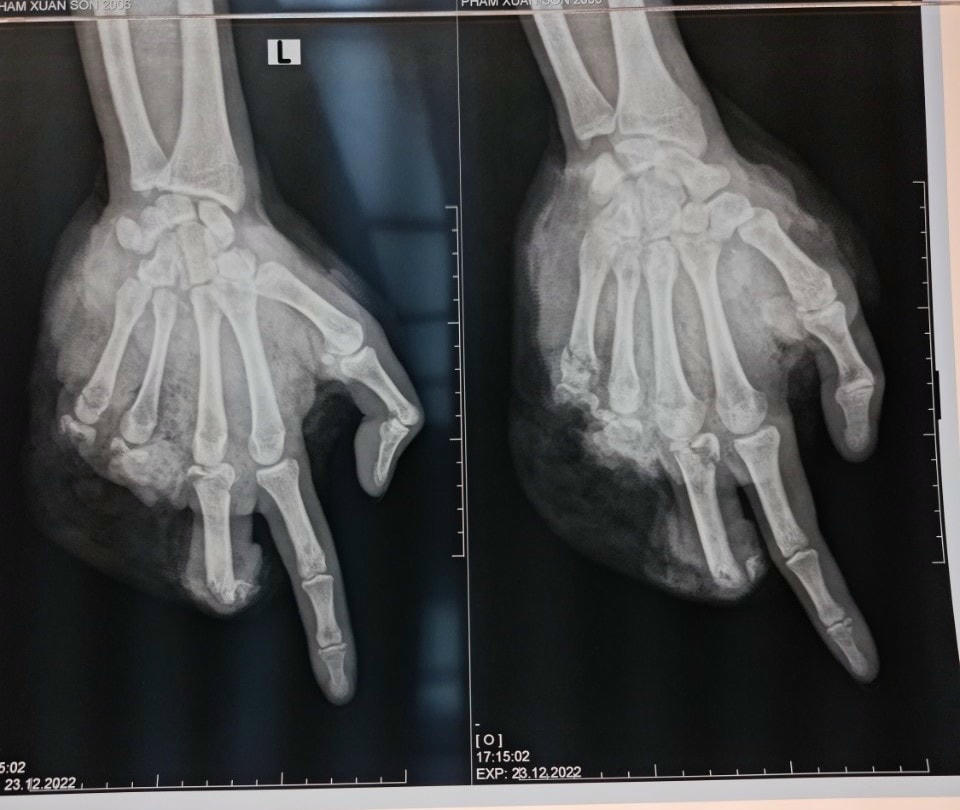 Một trường hợp điển hình được các bác sĩ thông tin, bệnh nhân nam (16 tuổi, ở Bắc Giang) vào viện trong tình trạng vết thương bàn tay trái phức tạp. Theo lời kể của gia đình, bệnh nhân chơi pháo tự chế, khi đang cầm pháo trên tay thì pháo nổ gây nát bàn tay trái và chân phải.
