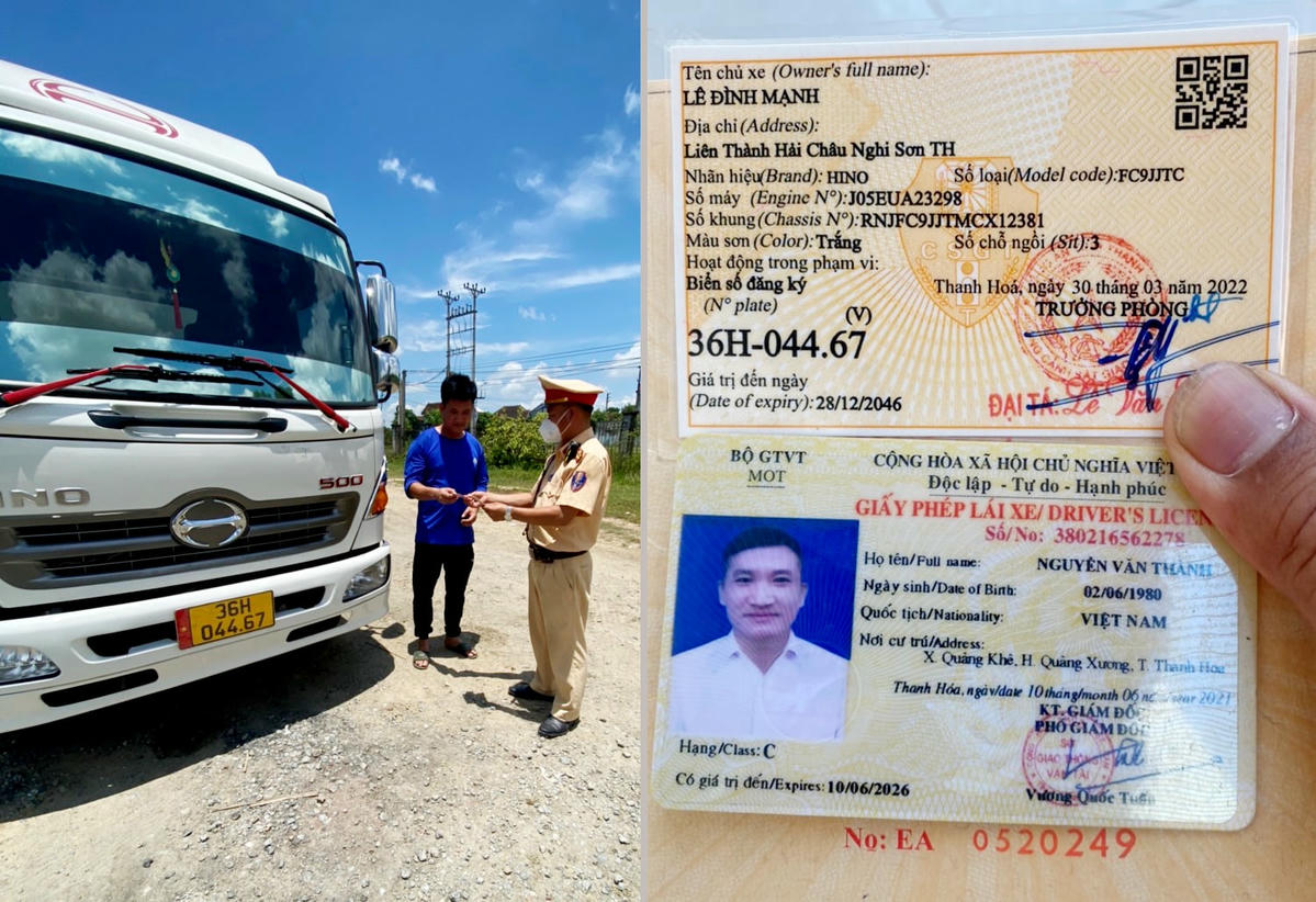 Quá trình kiểm tra, tổ công tác phát hiện chiếc xe trên không chở quá tải trọng. Tuy nhiên, khi kiểm tragiấy phép lái xe của tài xế Thành, lực lượng chức năng đã phát hiện có dấu hiệu giả mạo.