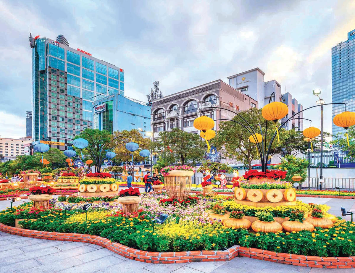 Khi Tết đến Xuân về, đường hoa Nguyễn Huệ có chủ điểm theo linh vật của năm. Bước chân vào đường hoa, là bước vào không gian văn hoá rất riêng, từ phong nhã thanh cao của các loại lan, đến tràn ngập màu vàng giản dị của mai, cúc, hướng dương... màu đỏ của nhiều loại hoa thân mềm. Có những khi, một mảnh trời sông nước miền Tây được dựng lên, với mái nhà tranh vắt qua con kênh cùng chiếc cầu khỉ, hai bên bờ là bắp đang trổ cờ cùng lúa phất đòng đòng. Cũng theo nét văn hoá xưa từ những năm 60, như ông bà từng đi chợ hoa, người dân thành phố cũng mặc đồ đẹp, thời trang, nô nức đi dạo vườn hoa vừa ngắm, vừa giao lưu trò chuyện vừa chụp ảnh. Đường hoa Nguyễn Huệ dịp Tết, sẽ ít thấy nhóm bạn bè như thường khi, thay vào đó là những gia đình đủ thế hệ, ông bà, cha mẹ, con cái, cháu chắt đi thành từng nhóm đông, mặc đồ khá tương đồng, thậm chí còn có cả đồng phục. Đường hoa là nơi gắn kết người thân trong gia đình, lưu giữ những ký ức bên những bồn hoa tiểu cảnh đẹp. Chính vì thế, đường hoa Nguyễn Huệ rất đông người đến, nhiều khi là len kín, dập dìu đi lại, nhất là vào buổi tối, trời trong gió mát, đèn điện chiếu sáng, lấp lánh càng làm rực rỡ lên những nhành hoa giữa các tòa nhà cao tầng lộng lẫy, sang trọng.