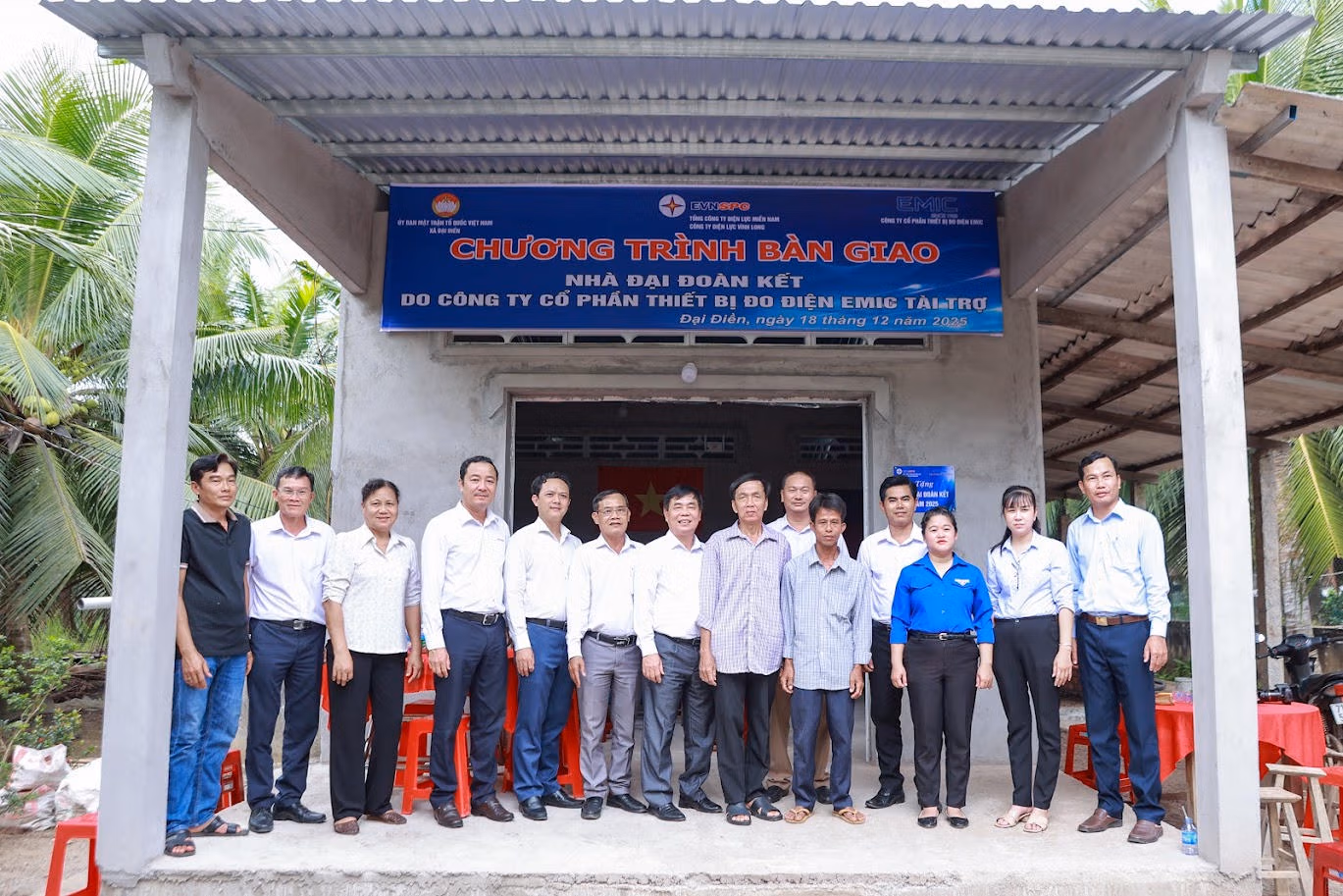 Ngày 18/12, Công ty Cổ phần Thiết bị đo điện EMIC đã tổ chức lễ bàn giao Nhà Đại Đoàn Kết cho hai hộ gia đình khó khăn tại tỉnh Vĩnh Long. Hoạt động nằm trong chương trình trao tặng 20 căn nhà tình nghĩa, với tổng kinh phí tài trợ 1,2 tỷ đồng, thông qua Ủy ban MTTQ Việt Nam tỉnh Vĩnh Long.