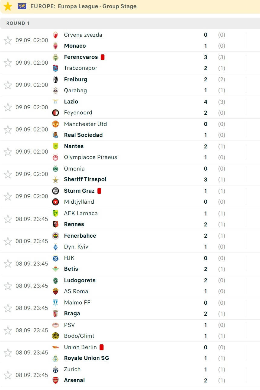 Đội bóng thất bại trước Man Utd ở cuối tuần vừa qua là Arsenal cũng đang thi đấu tại Europa League. Đoàn quân của HLV Arteta đã có được chiến thắng 2-1 trên sân của Zurich để tạm thời vươn lên đứng đầu bảng A.