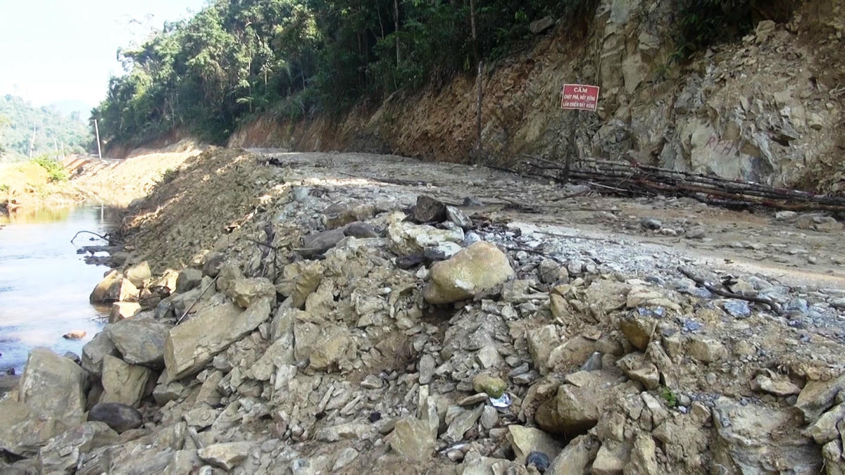 Trước mắt chúng tôi, một con đường đất dài hơn 300m, rộng chừng 5m được thực hiện bằng cách cày ngang núi đồi, hạ rừng phòng hộ để mở đường. Vì thế, một góc rừng lớn với nhiều cây gỗ hàng chục năm tuổi bị đốn hạ trơ gốc và nhiều khoảnh rừng nguyên sinh sau khi bị đơn vị thi công múc đất, đá tạo thành bờ vực cao. Một số cây rừng tự nhiên bị cưa hạ vẫn còn trơ gốc, nhiều cây, nhánh bị gãy, đổ nằm ngay lối đi vào dự án thủy điện. Đất đá tràn xuống suối nguy cơ làm thay đổi dòng chảy và tiềm ẩn sạt lở đất vào mùa mưa bão.