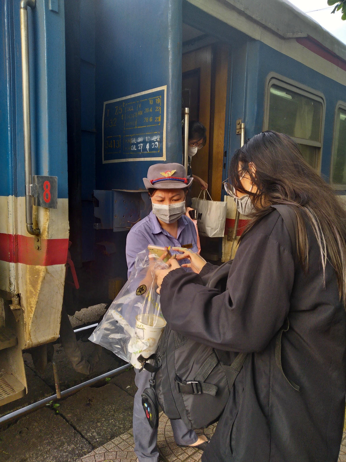 Chị Nguyễn Thị Phương Thảo, đi chuyến tàu từ ga Long Biên đến ga Hải Dương chia sẻ: "Năm nay, mình không phải xếp hàng đặt vé mà có thể đặt qua app, qua ví điện tử hoặc qua website nên thuận tiện hơn".