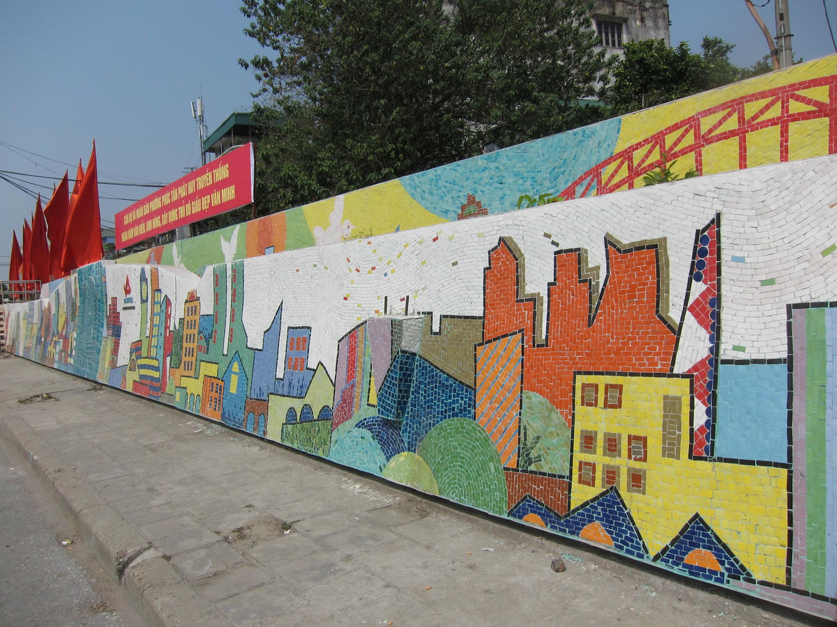 Ngoại trừ bức phù điêu Hà Nội mùa đông năm 1946 (tác giả Nguyễn Chi Lăng) đúc bằng đồng, được cài đặt trước cửa chợ Đồng Xuân vào cuối năm 2004, thì cho mãi đến năm 2010, nhân kỷ niệm 1000 năm Thăng Long - Hà Nội, Hà Nội mới xuất hiện thêm bức tranh gốm mang tên Con đường gốm sứ (tác giả Nguyễn Thu Thủy). Tuy nhiên, con đường này do được thiết kế bên sườn con đê nhỏ, không có đủ một không gian thuận lợi để ngắm nhìn và thưởng thức. Vì thế công trình đã nhanh chóng xuống cấp, gây phản cảm, lãng phí tiền của và công sức của nhiều người, nhiều tổ chức xã hội đã tâm huyết dành cho công trình.