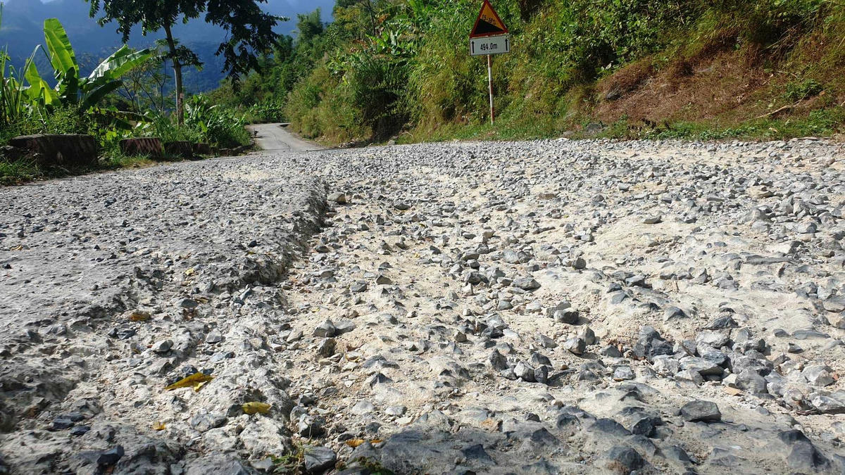 Theo quan sát của chúng tôi, bề mặt của tuyến đường có chiều dài hơn 10km nối trung tâm xã Lũng Cao với Son - Bá - Mười bị tróc rỗ, chi chít những “ổ voi, ổ gà”. Đặc biệt là tại các đoạn dốc góc cua tay áo, mặt nhựa đã bị mưa lũ cuốn trôi hết chỉ còn trơ lại lớp đá cấp phối, nhiều chỗ bị xoáy sâu xuống tạo thành những chiếc bẫy chết người. Dọc 2 bên đường còn có những điểm sụt lún, khiến việc tham gia giao thông hết sức khó khăn.
