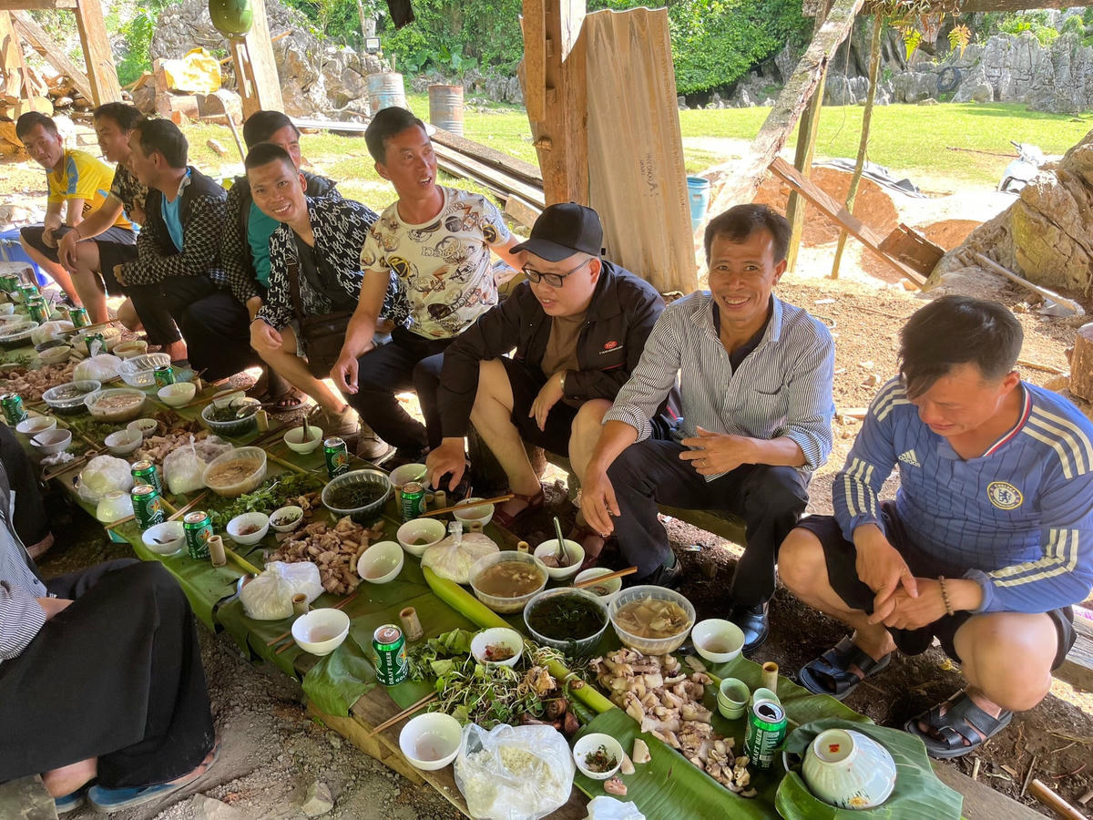 Theo lời mời của A Choa, chúng tôi đến thăm căn nhà mới của anh. Một chiếc bàn dài được trải lá chuối xanh, thịt lợn thái miếng lớn thơm nức mũi xếp ngay trên mặt lá, cùng với rau rừng, măng và rượu đặt dưới gầm sàn còn ngổn ngang gỗ và đồ dùng chưa kịp thu dọn. Đặc biệt, thứ rượu ngô chắt từ trong can vào những chiếc chén được cắt từ những gióng tre. Sau vài ống rượu, tôi đã cảm thấy mình như say.