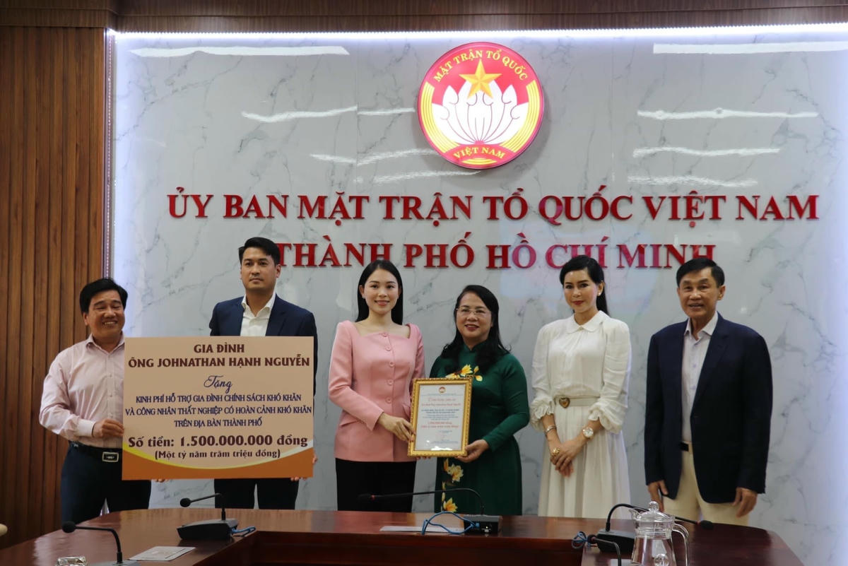 Chiều 27/4, gia đình ông Johnathan Hạnh Nguyễn, Chủ tịch Tập đoàn Liên Thái Bình Dương (IPPG) đã đến Ủy ban MTTQ Việt Nam TP HCM trao tặng số tiền 1,5 tỷ đồng cho Quỹ “Vì người nghèo” Thành phố.