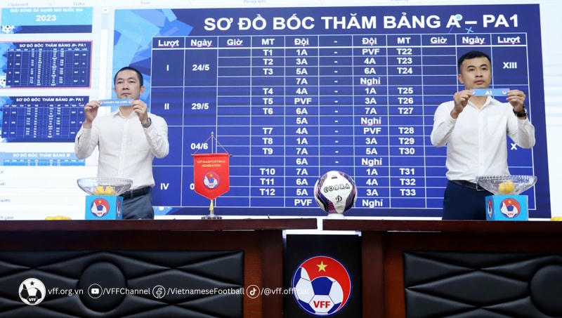 Theo tin từ Liên đoàn bóng đá Việt Nam, ngày 25/4, lễ bốc thăm, xếp lịch thi đấu và tập huấn điều phối viên giải bóng đá hạng Nhì Quốc gia 2023 được tổ chức tại trụ sở Liên đoàn.