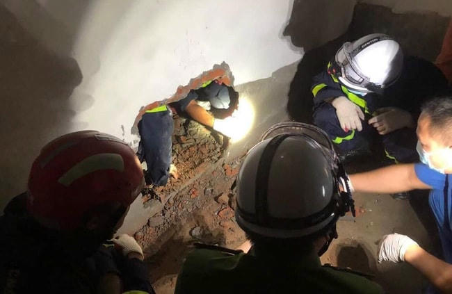 Do nạn nhân rơi xuống hố kỹ thuật thang máy sâu 10 m, nên tổ công tác đã đục 1 lỗ nhỏ dưới chân tòa nhà, vừa đủ đưa người và máy móc tiếp cận vị trí nạn nhân.
