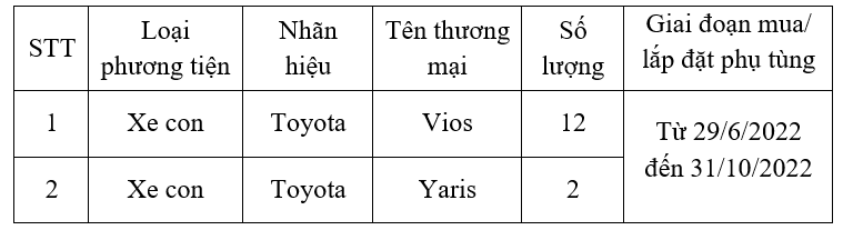 Theo Ủy ban Cạnh tranh Quốc gia, số lượng xe đang được Toyota Việt Nam tiến hành triệu hồi là 12 chiếc Toyota Vios và 2 chiếc Toyota Yaris sản xuất trong năm 2022.