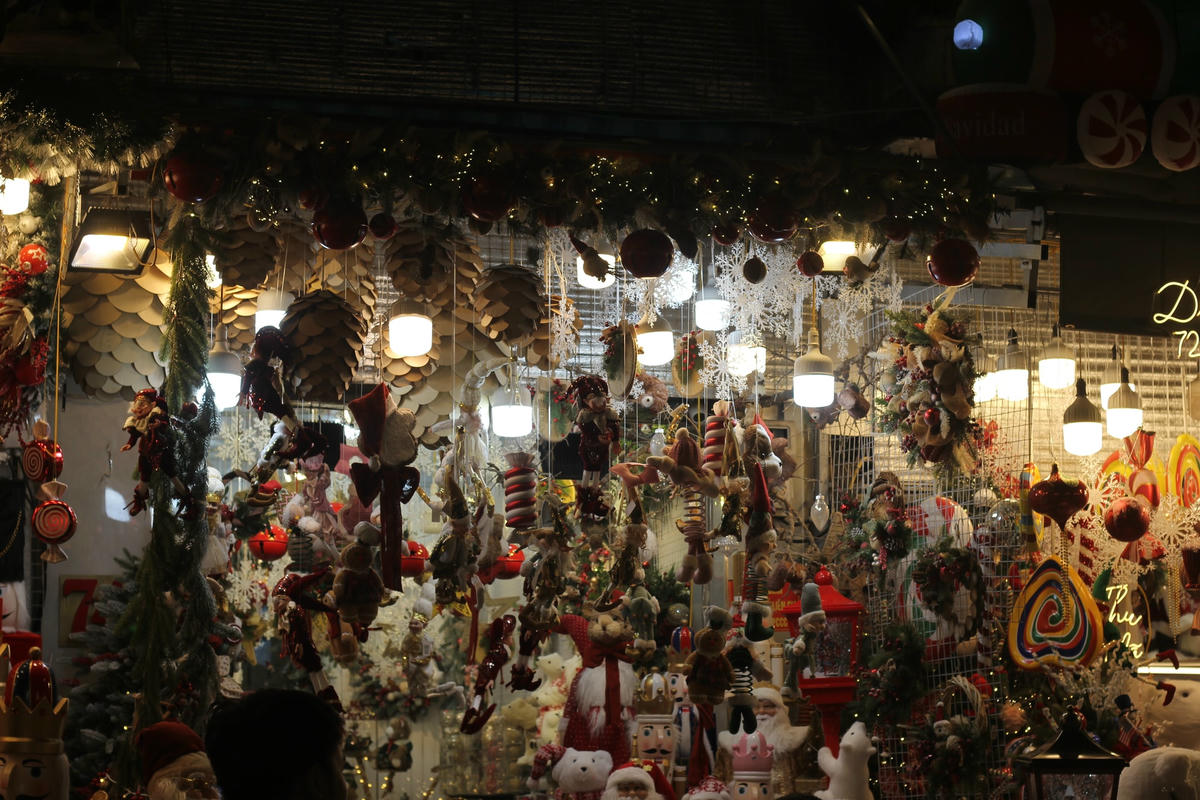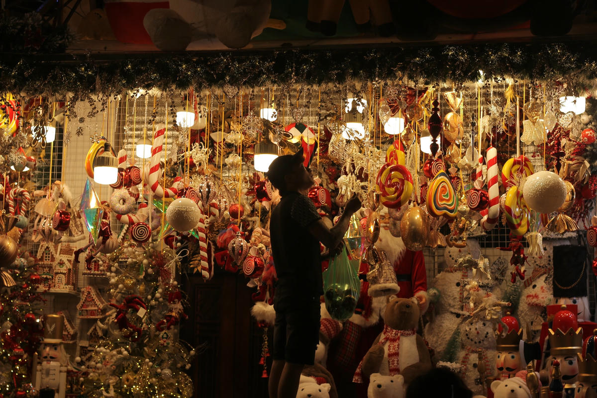 Cuối năm là thời điểm mà người dân Thủ đô háo hức đón chờ những ngày lễ quân trọng và lễ Giáng sinh cũng là một trong số những ngày lễ nhận được sự yêu thích của mọi người. Để đáp ứng nhu cầu của người dân, "thiên đường" mua sắm phố hàng Mã đã tất bật chuẩn bị đồ Giáng sinh sớm hơn 1 tháng để người dân có thể thoải mái mua sắm và đến tham quan. Từ đầu tháng 11, các cửa hàng đã bắt đầu trang trí trang hoàng với muôn vàn khung cảnh lung linh, đậm sắc màu của ngày lễ Giáng sinh. Những tiểu thương trên phố Hàng Mã như những "người thợ" khéo léo đã góp phần làm cho khu phố trở nên rực rỡ hơn bao giờ hết. Cây thông Noel, vòng lá mùa vọng, chuông Giáng sinh, bờm tuần lộc,..."chiếm sóng" ở khắp các cửa hàng. Theo chị Huyền Trang (chủ cửa hàng tại phố Hàng Mã) cho biết, năm nay nhiều mẫu mã đa dạng hơn nhằm phục vụ nhu cầu của khách hàng khi ghé mua sắm. Các mặt hàng hầu như giao động từ 20.000 đồng trở lên. Những cây thông Noel ngập sắc lung linh dưới ánh đèn. Các tiểu thương cẩn thận chăm chút cho những món hàng của mình. Dù thời tiết Hà Nội đã bước vào đông nhưng điều này không làm khó niềm háo hức của những "tín đồ" say mê không khí Giáng sinh. Bộ đồ ấm áp bên cây thông Noel tạo nên khoảnh khắc đáng nhớ. Càng cận kề Giáng sinh, phố xá càng trở nên đông đúc, nhộn nhịp hơn. Các bạn trẻ cũng tranh thủ khoác lên mình những bộ đồ xinh xắn để tranh thủ check in, lưu giữ những cảnh tượng đẹp đẽ này.