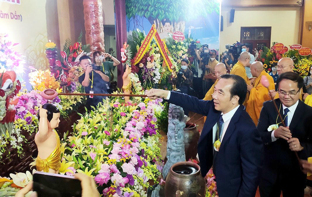 Tại Đại lễ, Chư tôn đức, các tăng, ni, đại biểu đã dành phút tưởng nhớ công lao to lớn của Chủ tịch Hồ Chí Minh, các anh hùng liệt sỹ, đồng bào tử nạn và thực hiện nghi thức dâng hương, tắm Phật truyền thống, cầu nguyện quốc thái dân an, thế giới hoà bình, chúng sinh an lạc.