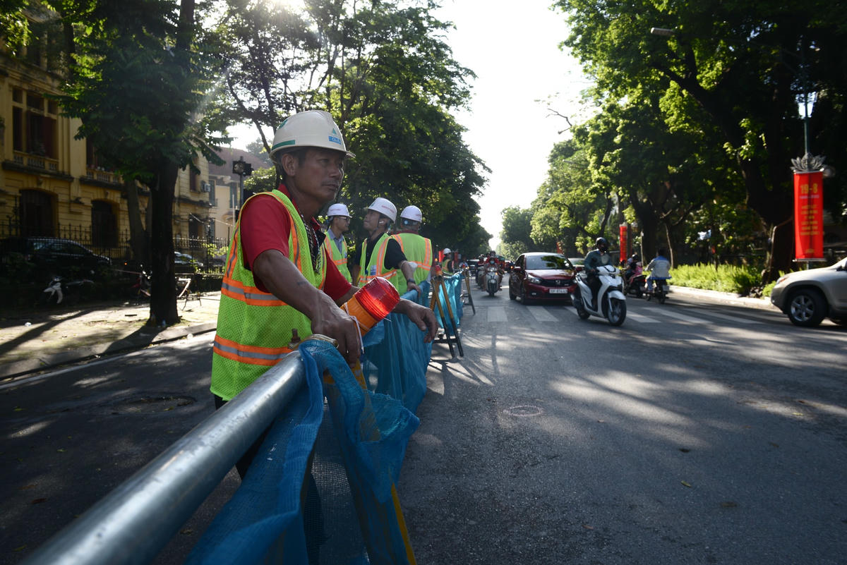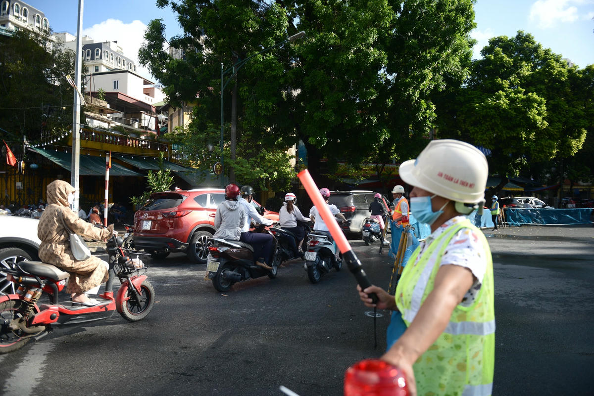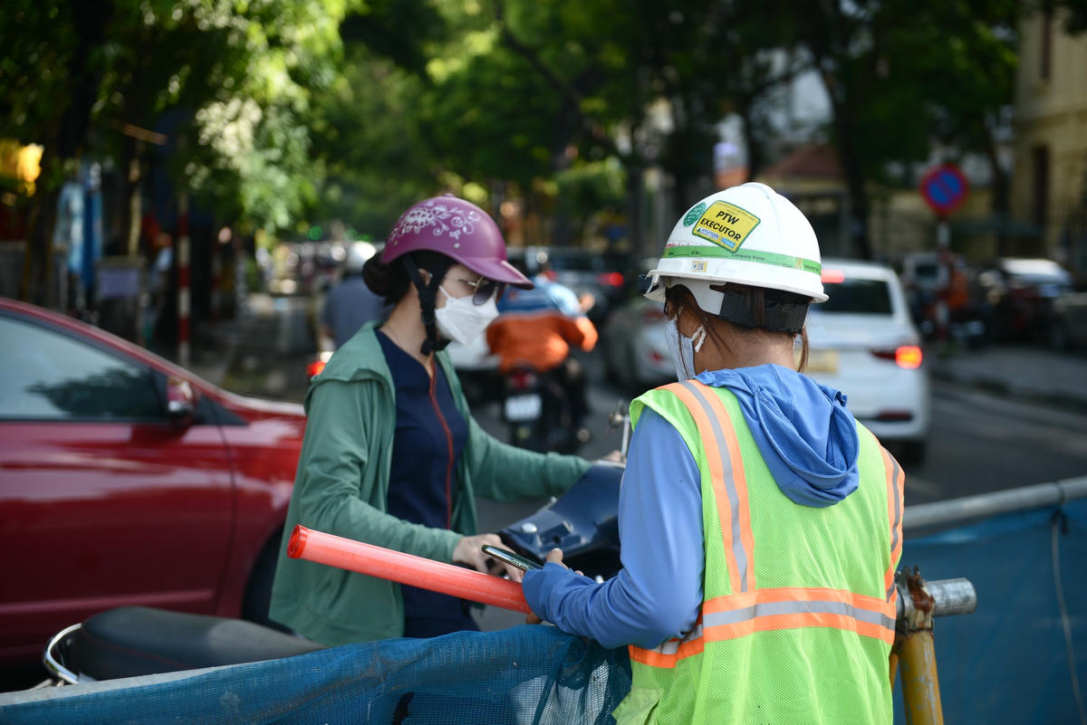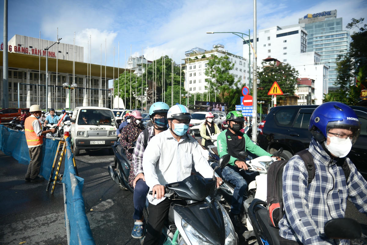 Giao thông tắc nghẽn tại điểm phân luồng phục vụ thi công ga S12 Nhổn - Hà Nội