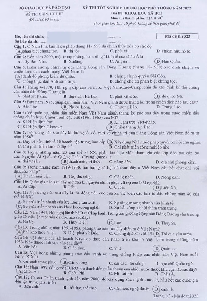 Theo đánh giá của giáo viên, kiến thức đề thi môn Lịch sử trong bài thi tổ hợp Khoa học xã hội, Kỳ thi tốt nghiệp THPT 2022 thuộc những nội dung cơ bản trong SGK, học sinh trung bình đến khá có thể đạt đến điểm 8 trở lên.