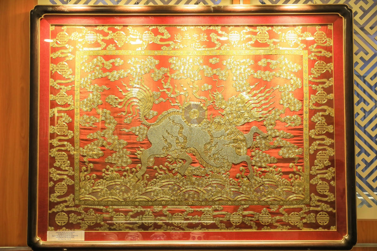 Cùng với đó là một số tranh thêu cung đình như Long bào, mãng bào, phượng bào, đồ dùng cho các hoàng tử, công chúa, những bức tranh thêu cung đình vô cùng độc đáo… được tạo nên từ bàn tay tài hoa và tâm huyết của những người thợ dân gian Việt Nam.