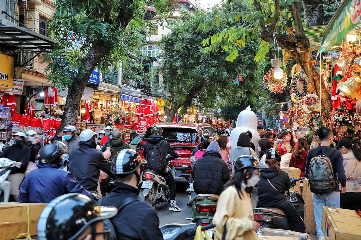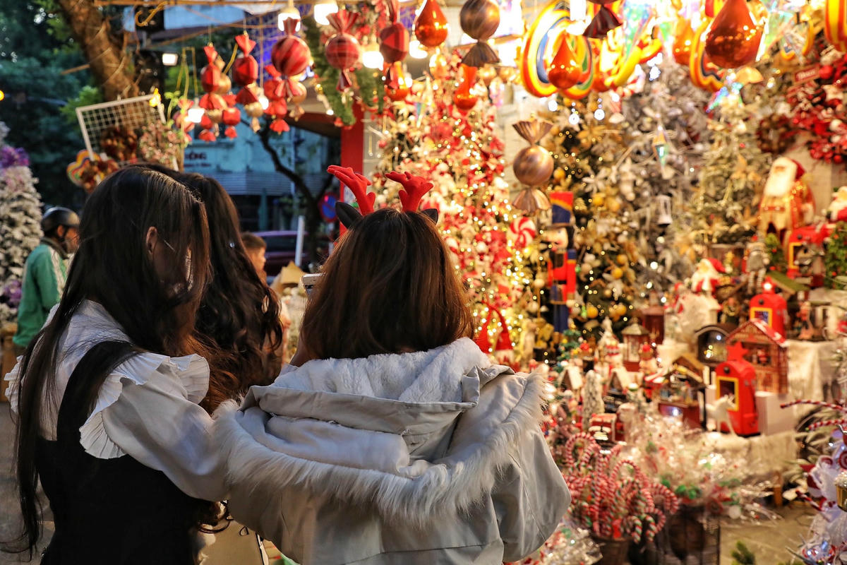 Những ngày này, trên tuyến phố Hàng Mã bày bán các loại mặt hàng phục vụ giáng sinh (Noel) như quần áo, cây thông, đồ trang trí rực rỡ sắc màu. Giới trẻ không khỏi hứng thú tới đây mua bán, chụp ảnh khiến cả tuyến phố Hàng Mã lúc nào cũng nhộn nhịp, từ sáng tới tận đêm.Theo ghi nhận của PV Báo Đại Đoàn Kết, đồ chơi và đồ trang trí Noel năm nay rất đa dạng, có nhiều mẫu mã, kiểu dáng đẹp mắt bày bán thu hút sự quan tâm của giới trẻ như cây thông, vòng nguyệt quế, ông già Noel, người tuyết,…Một chủ cửa hàng bán đồ trên phố Hàng Mã cho biết: “Năm nay tình hình dịch bệnh đã cơ bản được kiểm soát, vì vậy các hộ kinh doanh chúng tôi đã rục rịch nhập hàng bán từ tháng trước để bày bán cho người dân. Tuy nhiên, thời điểm này đa phần chúng tôi bán sỉ, còn bán lẻ thì chỉ “túc tắc”.Được biết, cây thông Noel được bán với giá từ 200.000 đồng cho đến vài chục triệu đồng tùy kích cỡ và cách trang trí. Vòng nguyệt quế được tiểu thương bán với giá 180 - 300.000 đồng.Ngoài đồ trang trí nhà cửa thì trang phục lễ hội cũng là mặt hàng được bày bán nhiều ở đây. Trung bình một bộ đồ Noel trẻ em có giá từ 150.000 - 300.000 đồng.Từ sáng đến tối những ngày này, tuyến phố Hàng Mã luôn đông nghịt các bạn trẻ tới chụp ảnh.Các bạn trẻ đều diện cho mình một bộ đồ thật rực rỡ sắc màu.Bạn Thu Thảo trú tại Hoàng Mai, Hà Nội chia sẻ: "Cứ mỗi khi Hà Nội sắp đến các dịp lễ lớn, phố Hàng Mã lại lung linh sắc màu, tôi liền tìm đến đây để chụp ảnh khoe với bạn bè".Không chỉ các bạn trẻ, mà nhưng người lớn tuổi cũng tìm đến con phố này mua sắm những món đồ lung linh để trang trí nhà cửa.Dòng người càng đông hơn khi con phố này bắt đầu lên đèn.Những món đồ với đủ loại màu sắc.