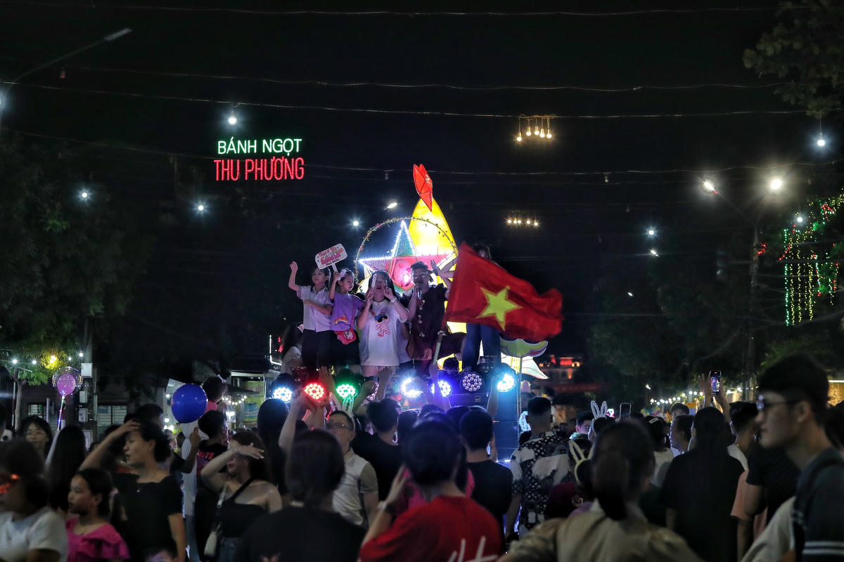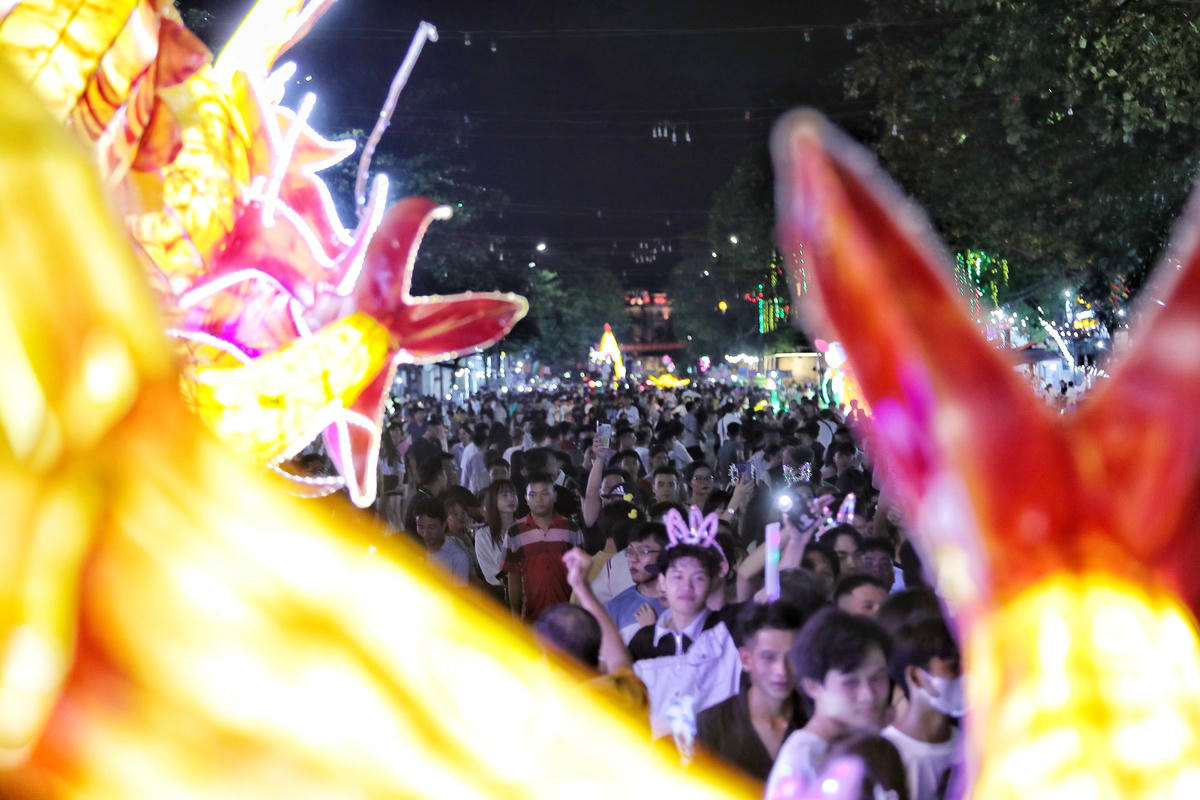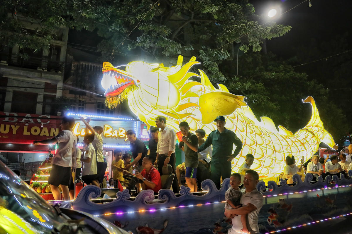 Giới trẻ ùn ùn đổ về nhiều tuyến đường để rước đèn Trung thu khổng lồ tại Tuyên Quang