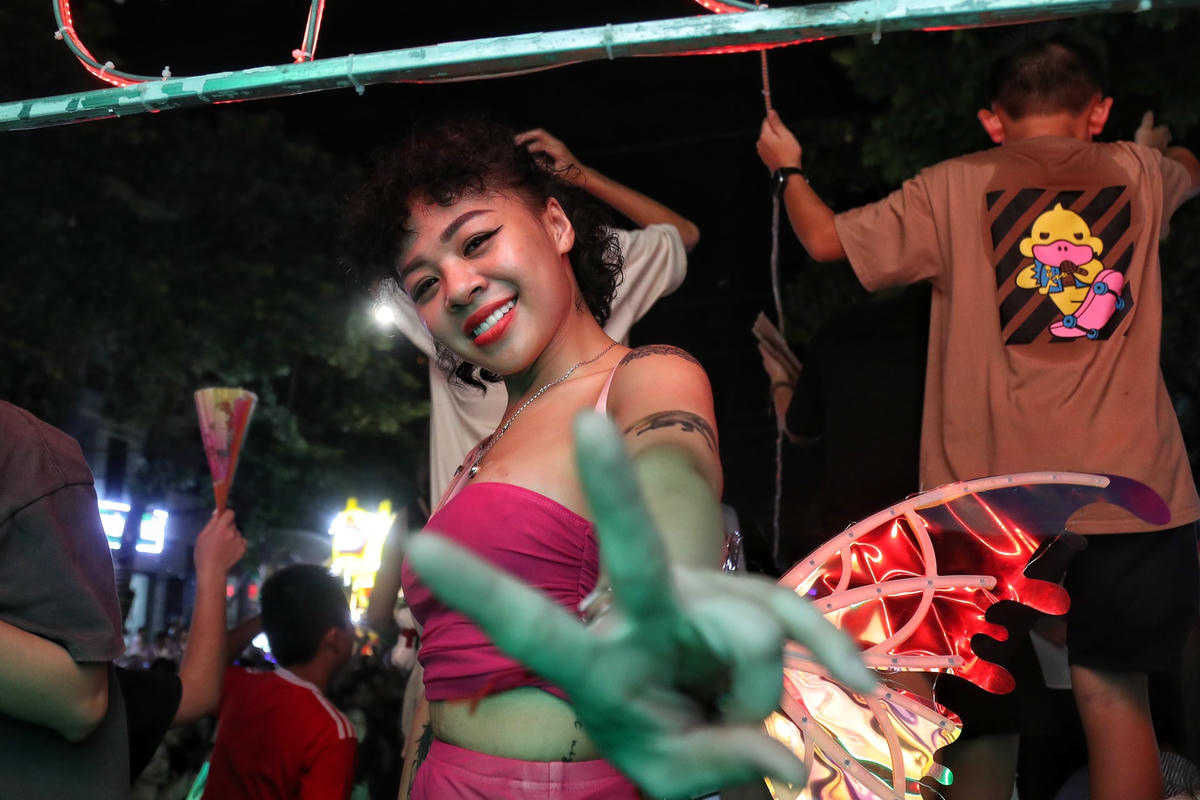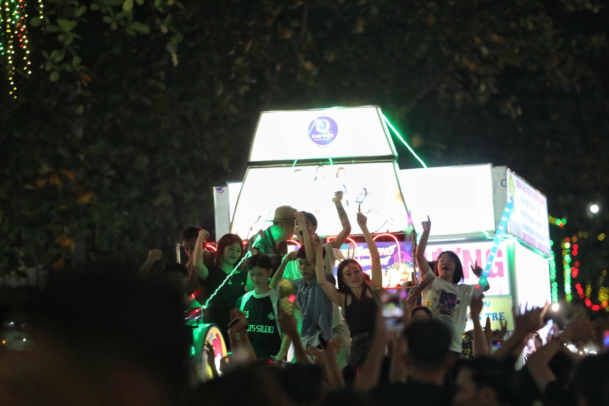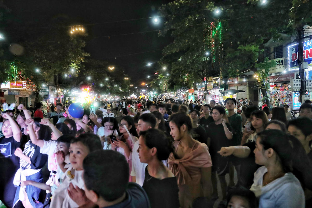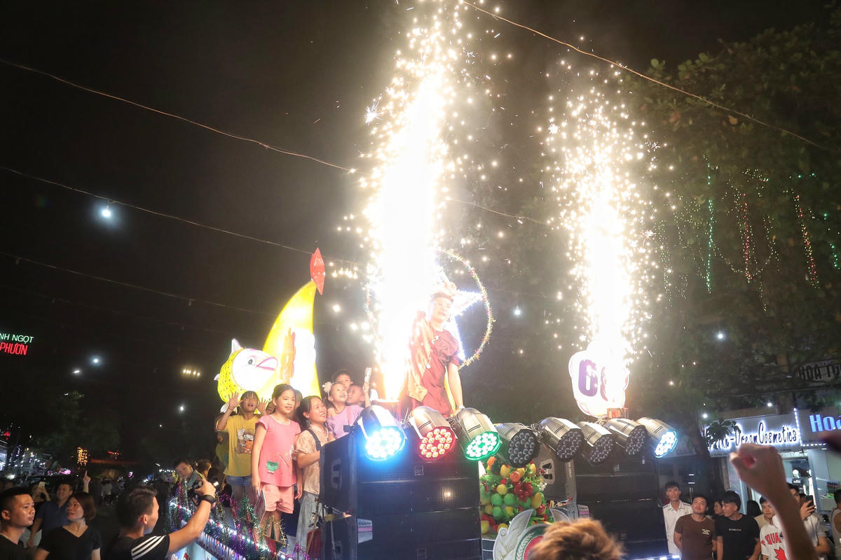 Giới trẻ ùn ùn đổ về nhiều tuyến đường để rước đèn Trung thu khổng lồ tại Tuyên Quang