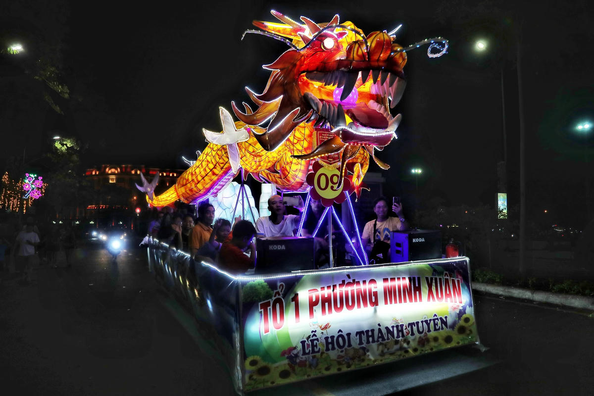 Tối 23/9, TP Tuyên Quang (tỉnh Tuyên Quang) người dân, du khách cùng nhau ra đường rước đèn Trung thu khổng lồ và hò reo, nhảy múa... sau khi Lễ hội thành Tuyên năm 2023 chính thức khai mạc.