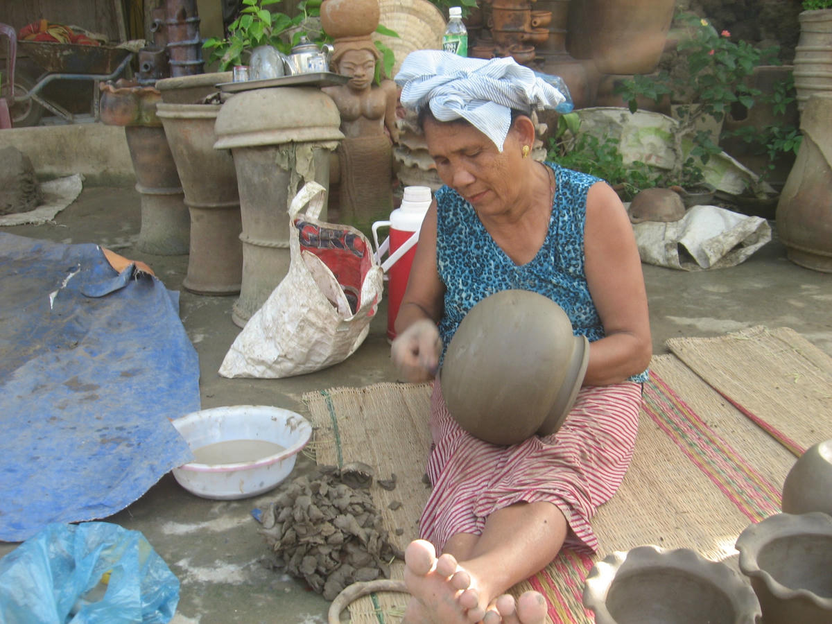Dù ở tuổi ngoại 70 nhưng đôi bàn tay bà Đàng Thị Phan vẫn thoăn thoắt vuốt nhẹ khuôn tre tròn lên mặt bình gốm thơm mùi hương đồng Nú Lăng, chuẩn bị phơi nắng trước khi nhóm củi, phủ rơm nung chín. “Bà cố nội tôi là Đàng Thị Lành, bà nội là Trượng Thị Xuân, đến mẹ tôi và ngày nay đến tôi tiếp tục nối nghiệp nghề nặn gốm. Nghề gốm là tài sản của người Chăm làng Bàu Trúc, làm sao bỏ được”, bà Phan kể.