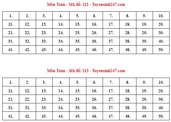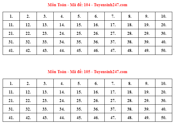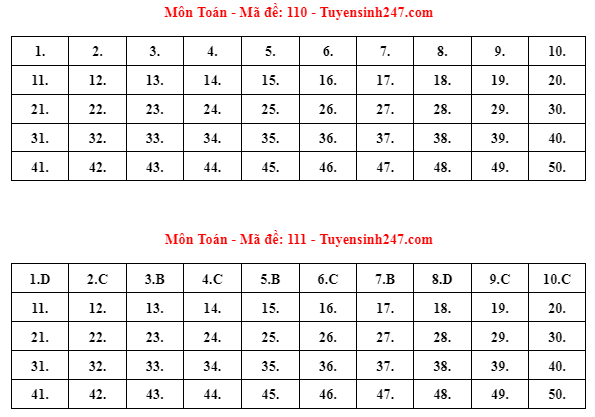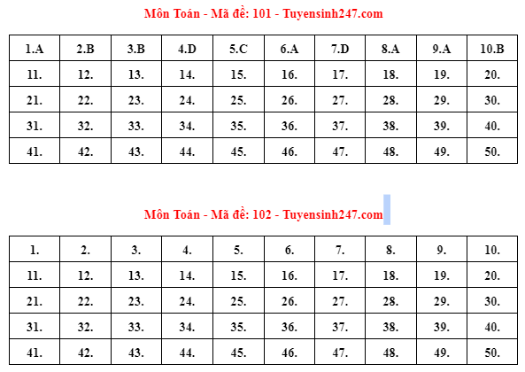 Thí sinh và phụ huynh có thể tham khảo gợi ý đáp án môn Toán dưới đây: