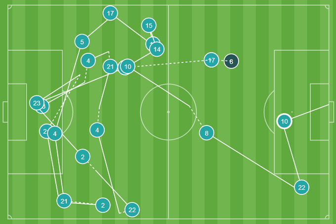 Đặc biệt, bàn thắng của Memphis Depay là kết quả của màn dàn xếp đầy chủ ý. Các cầu thủ áo cam phối hợp 20 đường chuyền liên tục, khiến đối thủ bối rối, trước khi Depay dứt điểm hoàn hảo mở tỷ số.