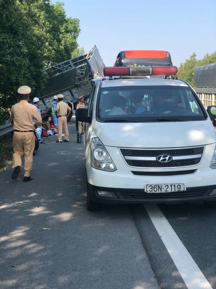 Thông tin từ Đội tuần tra kiểm soát giao thông đường bộ cao tốc số 3, Cục CSGT (Bộ Công an) cho biết, vào thời gian trên, trong khi ô tô tải BKS 36C-064.11 đang bị hỏng, đỗ ở làn khẩn cấp hướng đi Ninh Bình để sửa (phụ xe đang nằm dưới gầm xe để sửa) thì bị xe khách BKS 29B-240.95 (nhà xe Vân Anh chạy tuyến Thanh Hoá – Hà Nội và ngược lại) do lái xe Nguyễn Văn Luân (35 tuổi, trú tại thị xã Nghi Sơn, tỉnh Thanh Hoá) điều khiển, chạy cùng chiều đã đâm mạnh vào cạnh sườn xe tải. Cú đam mạnh khiến phần đầu bên phụ xe khách bị vỡ, biến dạng; ô tô tải bị hất tung lên giải phân cách của đường cao tốc.